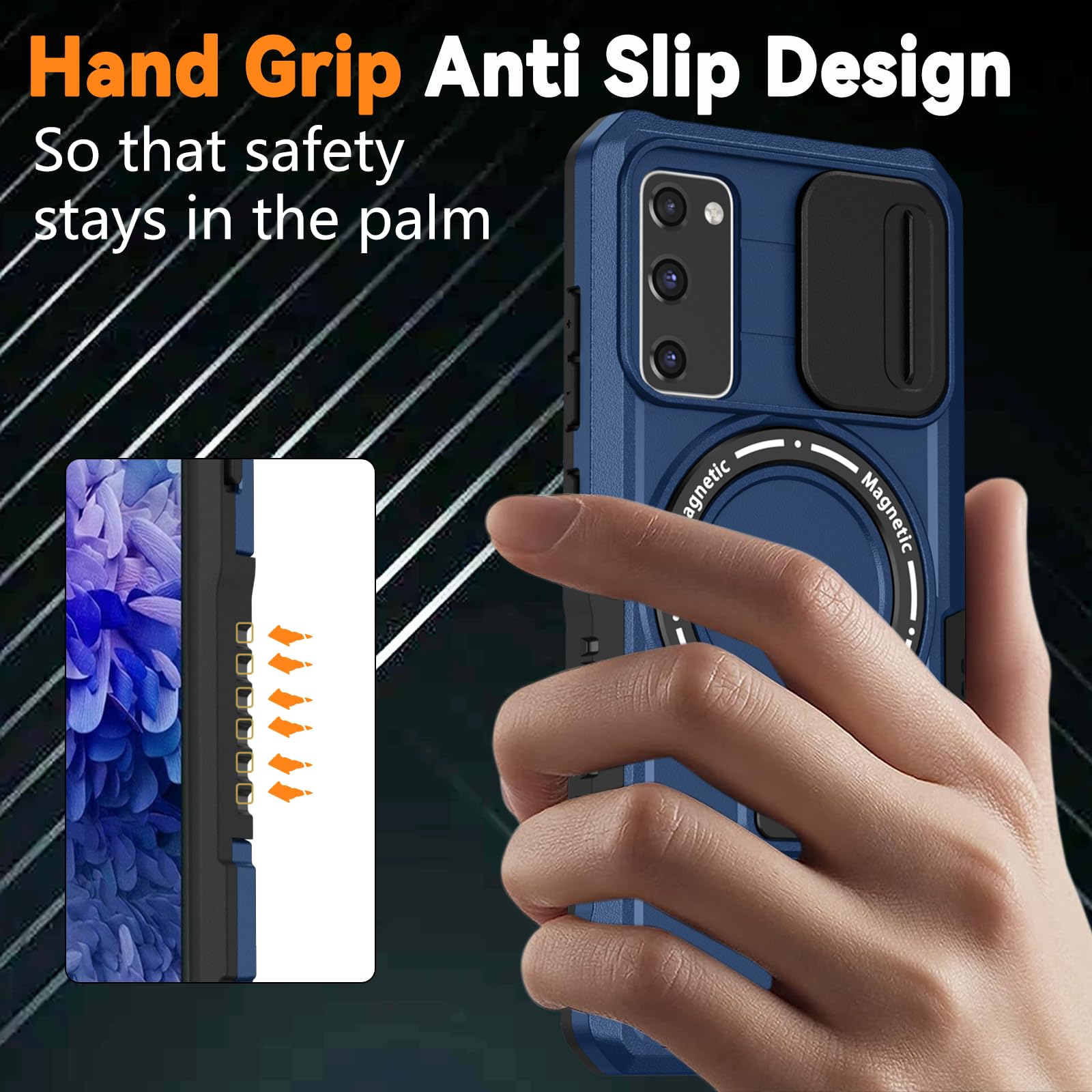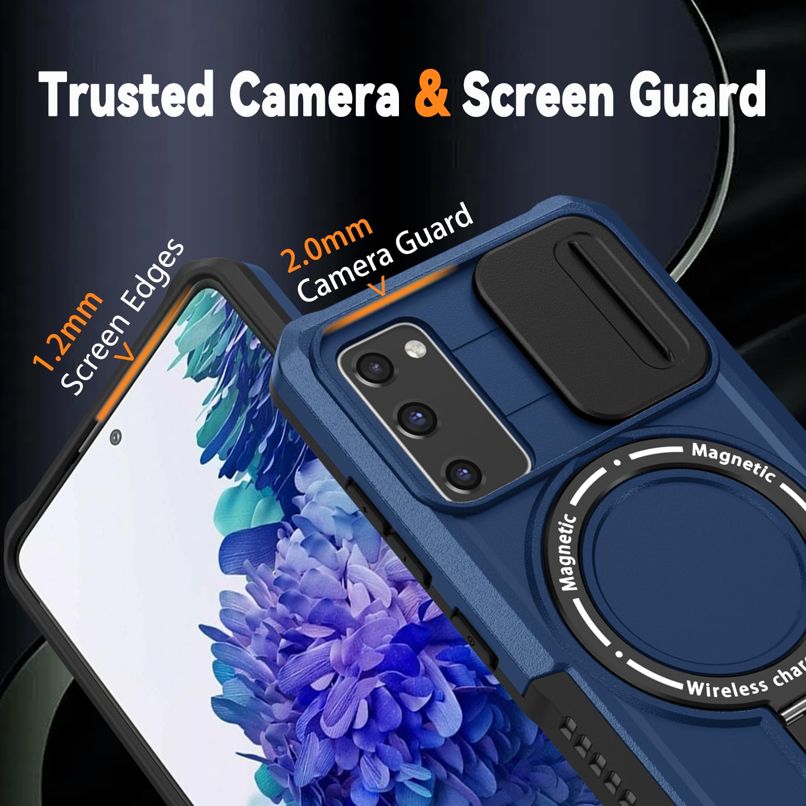 【Magnetic Ring Stand】This Samsung Galaxy S20 FE 5G phone case with magnetic ring kickstand provide two stand modes for vertical and horizontal viewing, can help you keep your hands free when watching web pages and videos. It can also be attached to a magnetic car mount (Not includes the magnetic car mount holder).