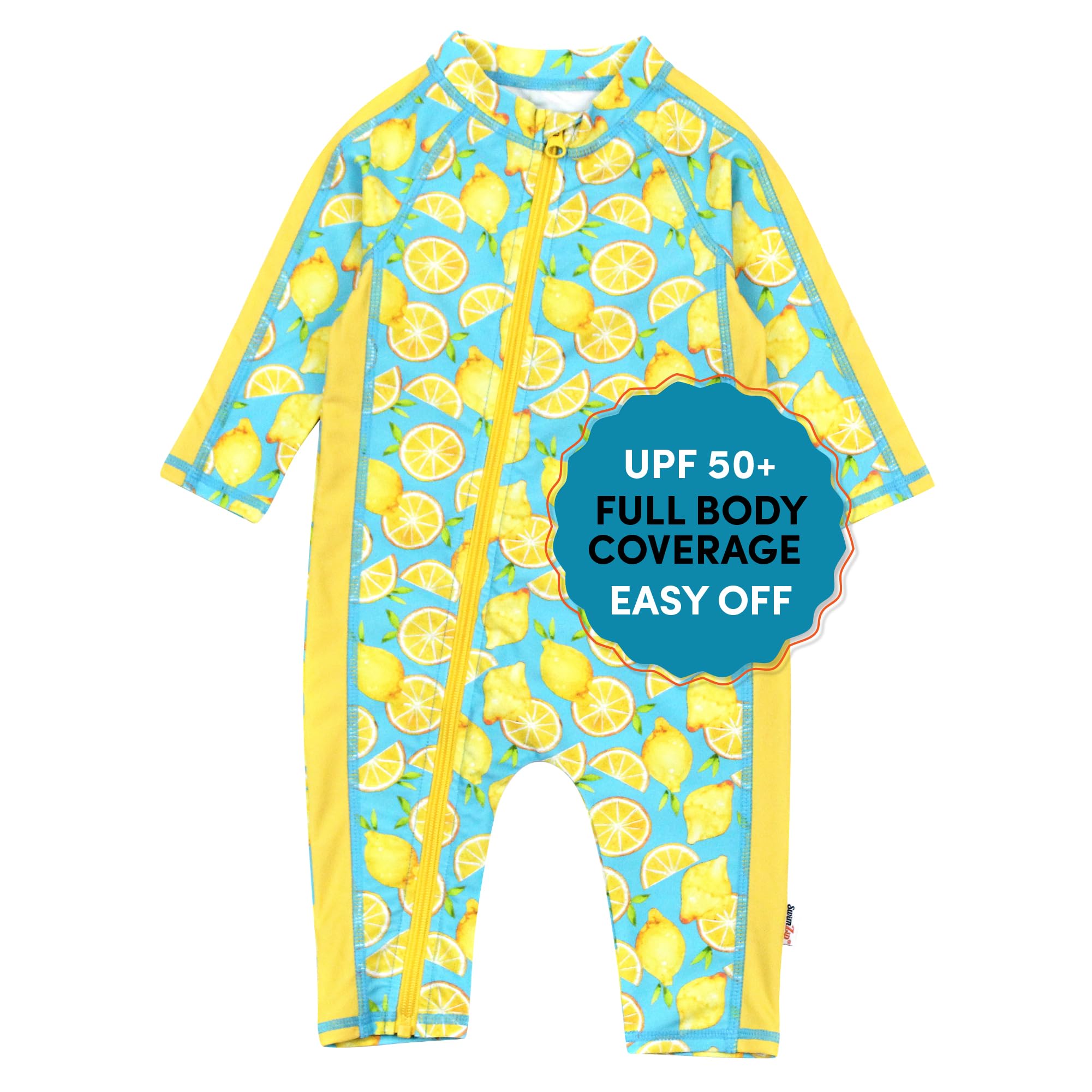 TOTAL SUN PROTECTION: SwimZip's famous sunsuit offers full-length sleeves and leg coverage to block the sun's harmful rays from the skin of baby boys (up to little boys age 6). Cover up instead of lathering up with chemical suncreens! Our sunsuits are made from our signature UPF 50+ (SPF 50+) rash guard material, which blocks out 98% of the sun's harsh UVA and UVB rays. It's saltwater- and chlorine-resistant, quick drying, breathable, and offers 4-way stretch!