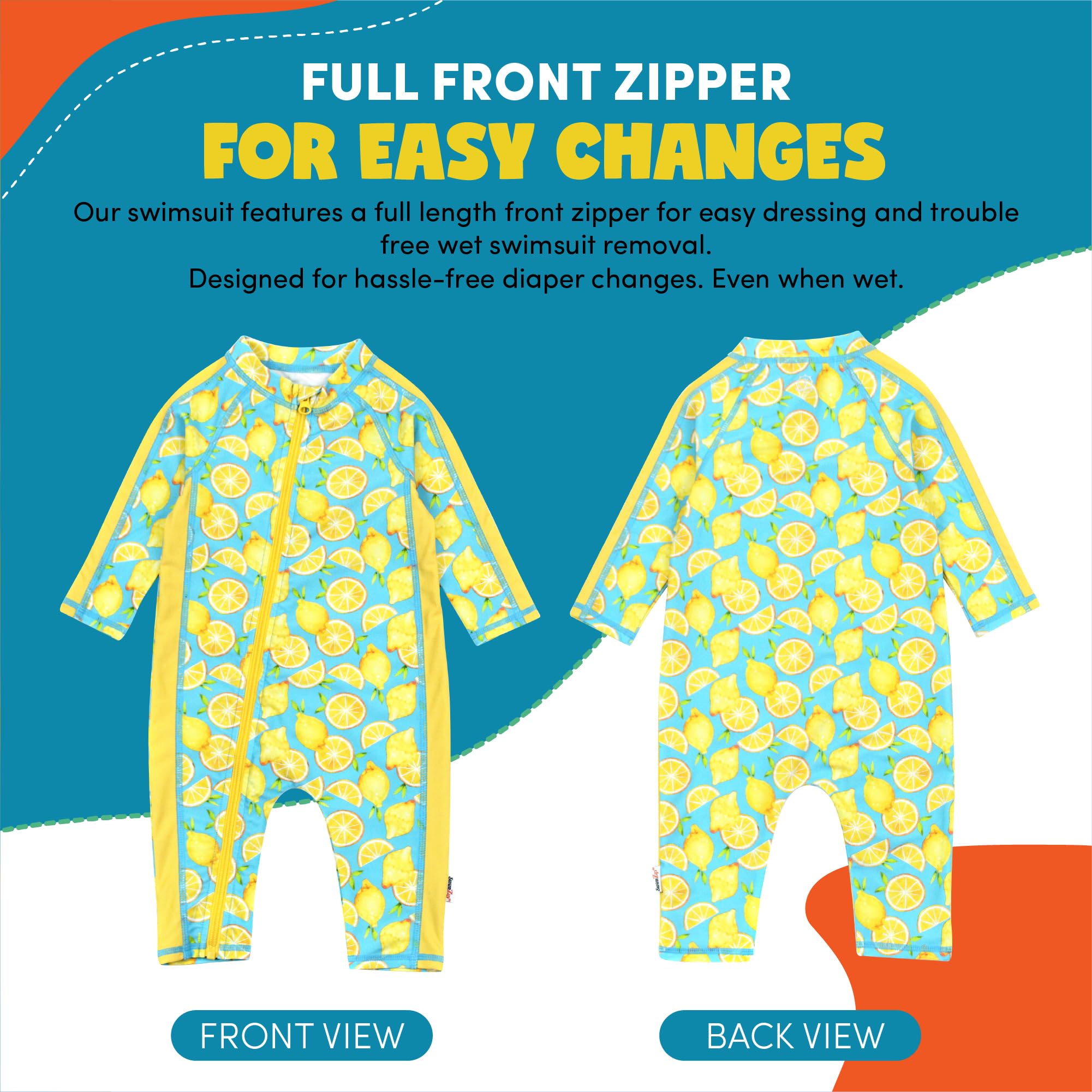 FULL FRONT ZIPPER: Our swimsuit features a full front zipper for hassle-free dressing and undressing. This design makes diaper changes a breeze, ensuring quick and easy transitions, even when the outfit is wet. Diaper changes have never been easier!