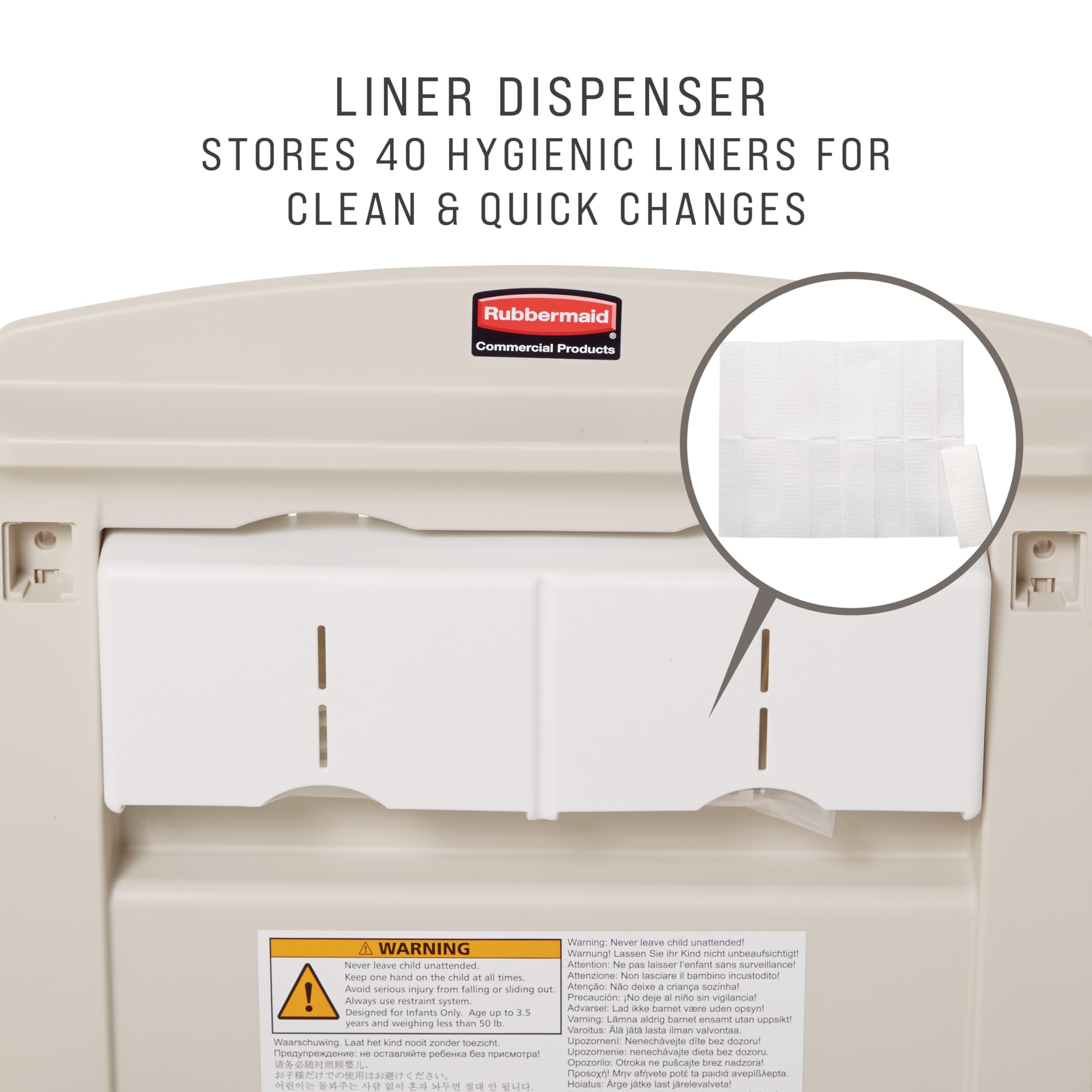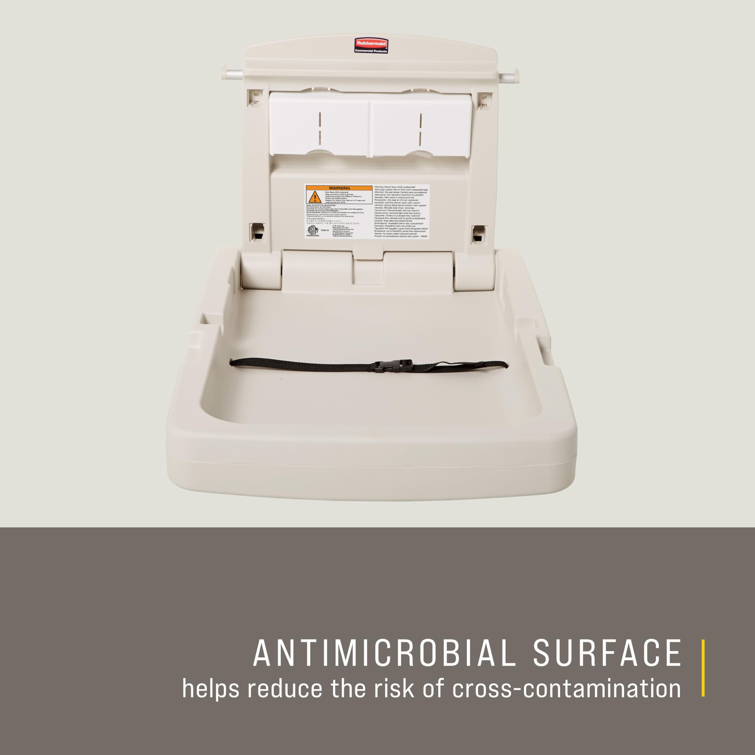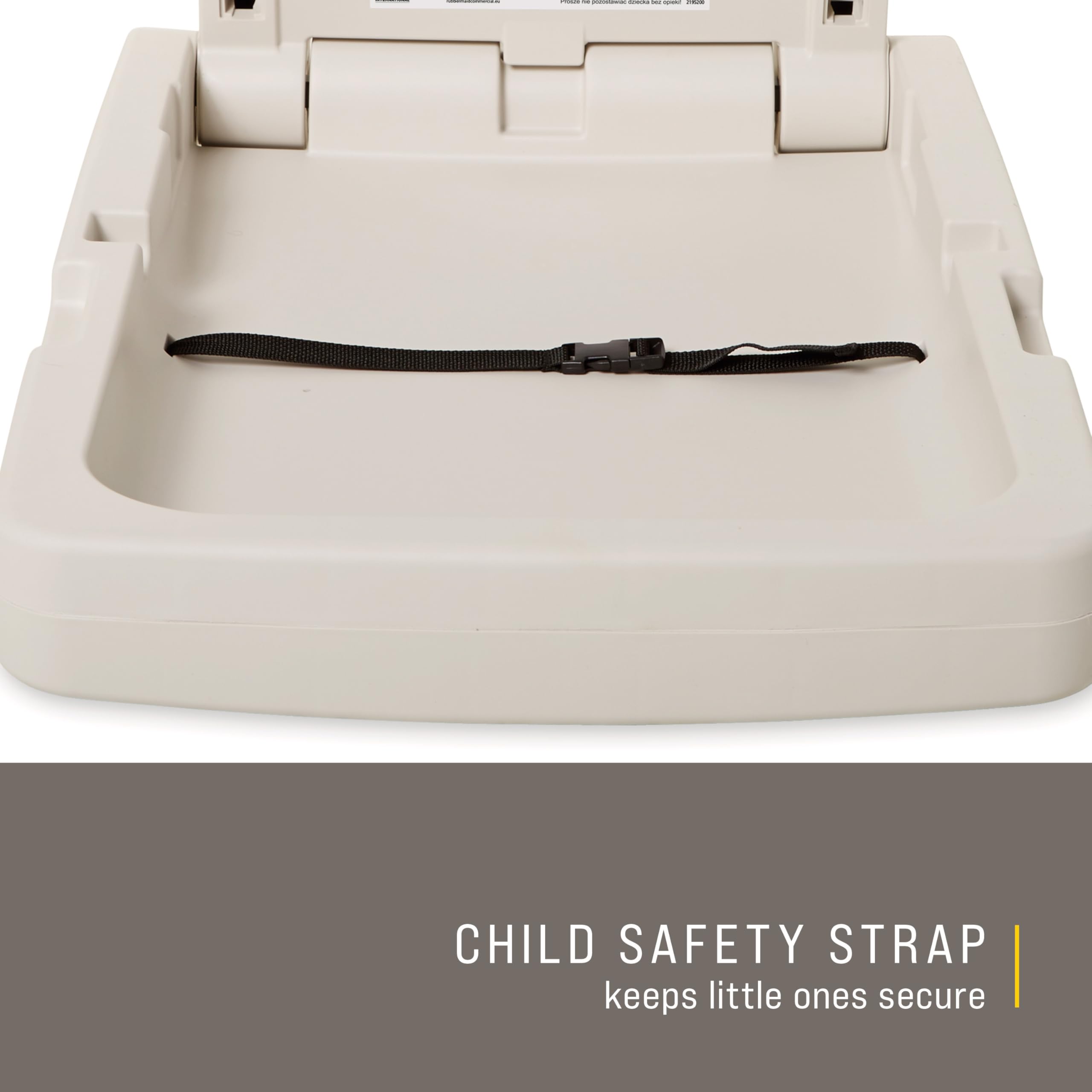 Curved changing surface and safety straps keep child secure. Built-in hooks free caregiver hands.