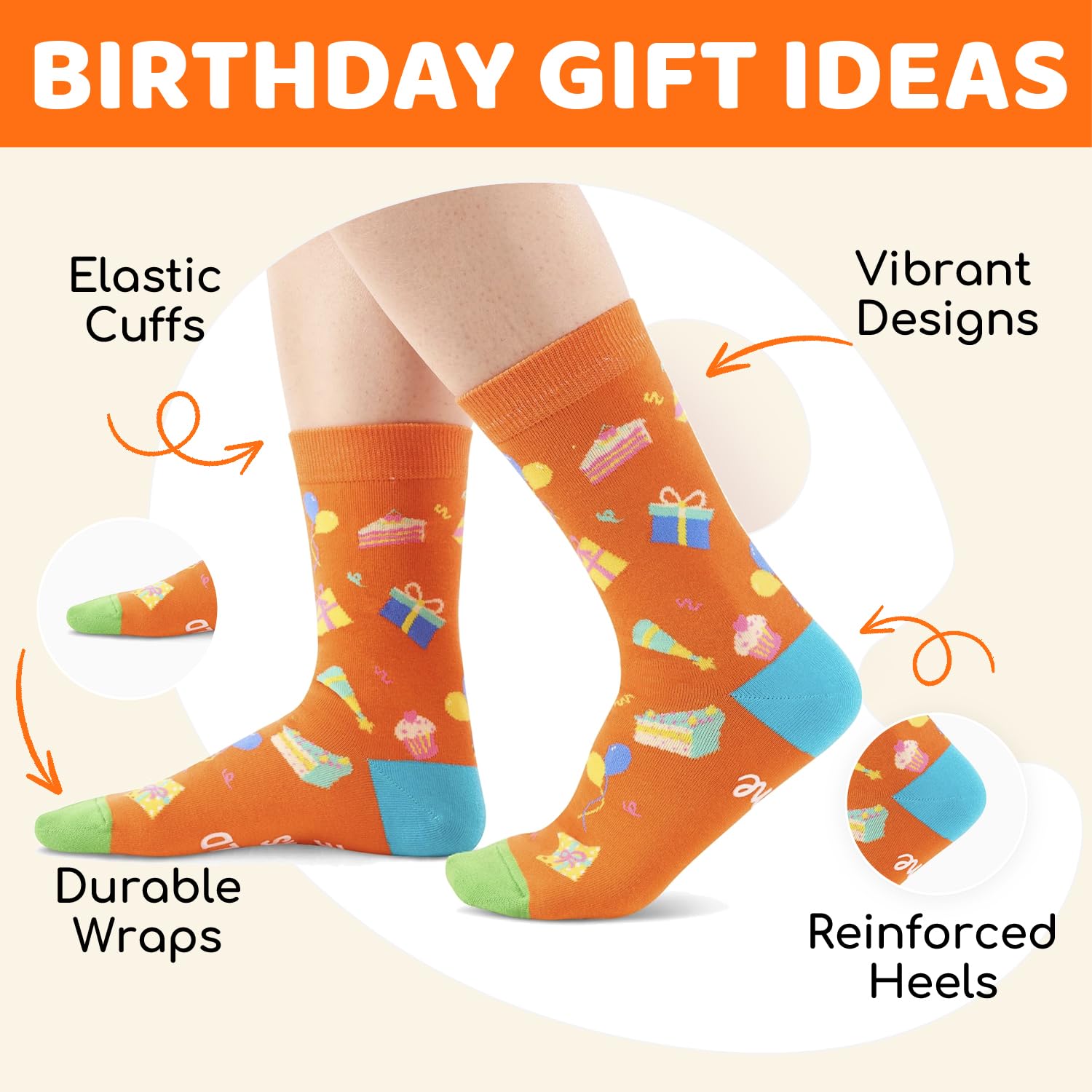 CUSHIONED SOLE: Our happy birthday socks are designed with a thinner top for breathability and a cushioned sole for added comfort, accompaning you every step of the way!