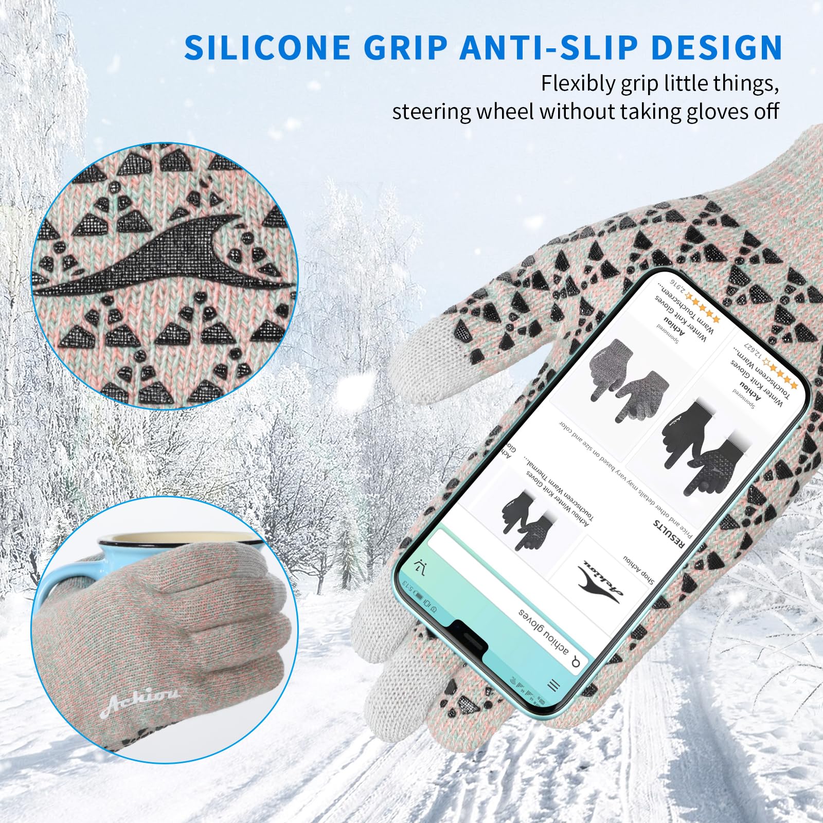 Convenient & Breathable Material : Living in the technology age, Achiou winter knit gloves let you use your phone without having to expose your hands. Breathable material allows the gloves to ventilate in order to decrease sweat accumulation.