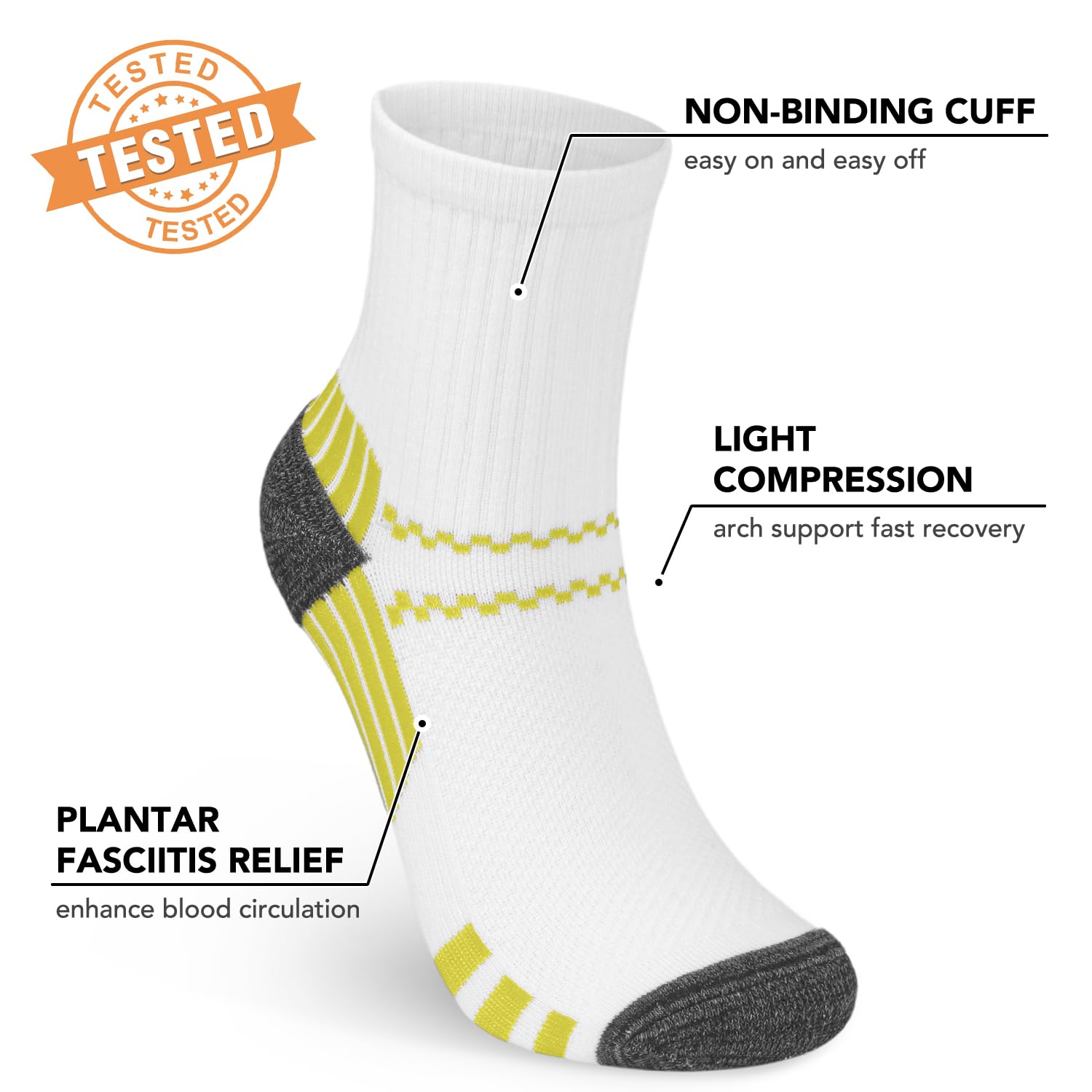 🏃DESIGNED FOR ANY ACTIVITY - Unique color design, Comfortable and durable! These seamless running plantar fasciitis socks with mixed colors put a fun finishing touch on your outfits. No need to worry about deformation or fading. Suitable for most sports activities, such as running, cycling,post-workout recovery, gym sessions, walking long distances, jogging, long flights or car trips, tennis, golf, fitness, and everyday use.