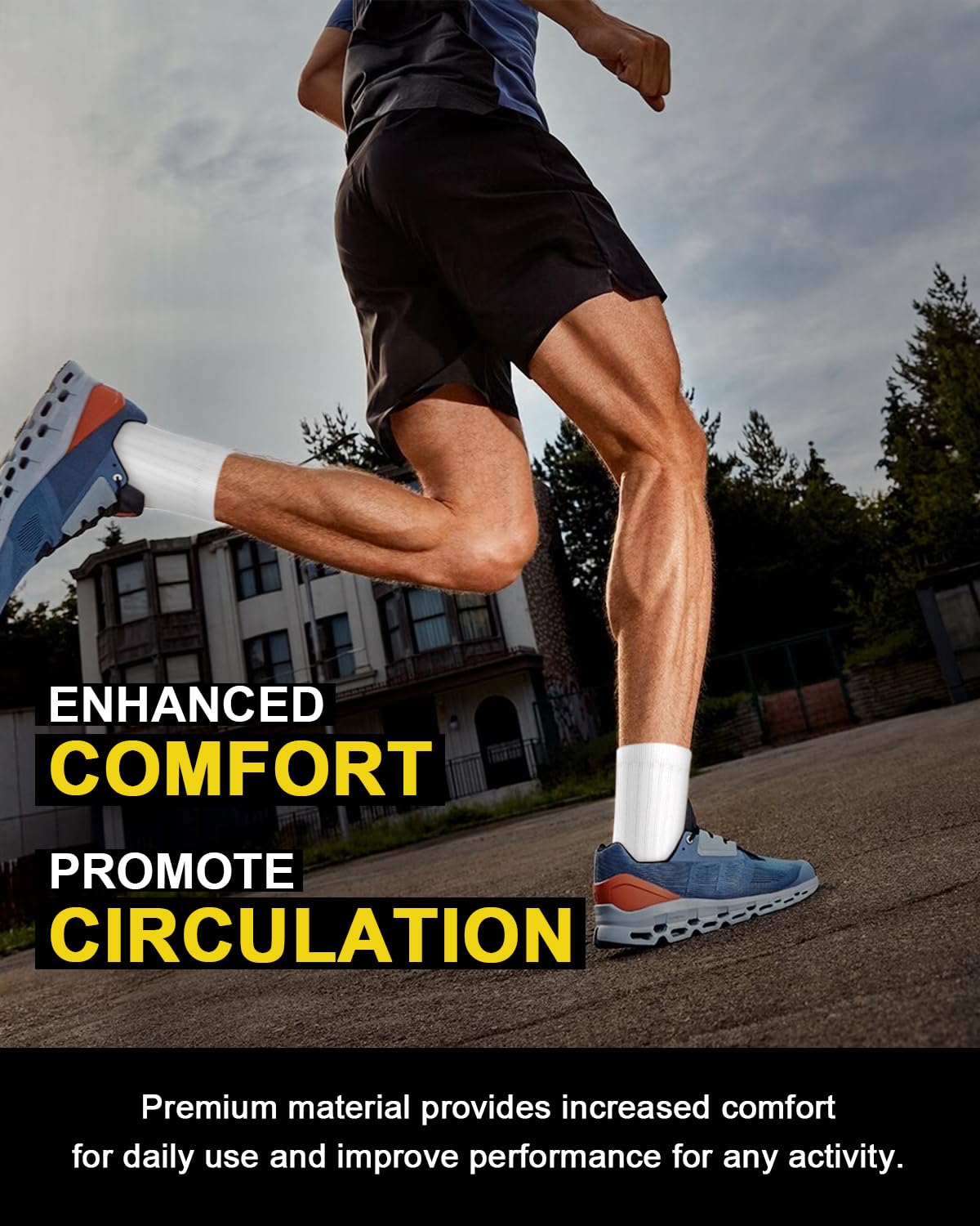 🏃PROTECTION & SUPPORT- Compression running socks can also help reduce swelling and inflammation in the ankle area. Compression ankle socks can provide additional support to the ankle joint, This added support can help prevent ankle sprains and other injuries, and can also improve overall balance and stability.