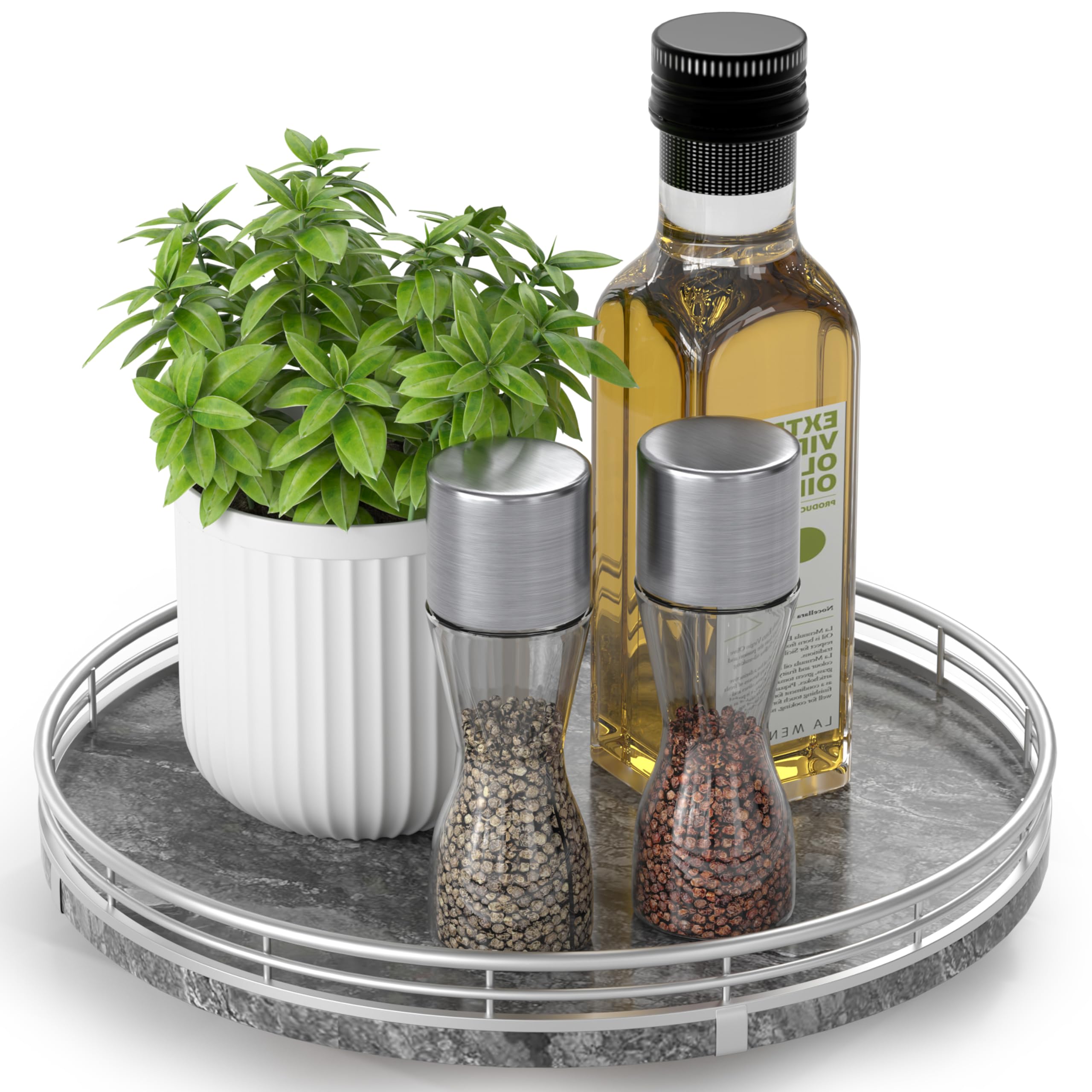PREMIUM NATURE GRAY MARBLE LAZY SUSAN – Crafted from natural green marble with a silver iron frame, this marble lazy Susan turntable adds elegance and durability to your dining table, kitchen counter, or bar.