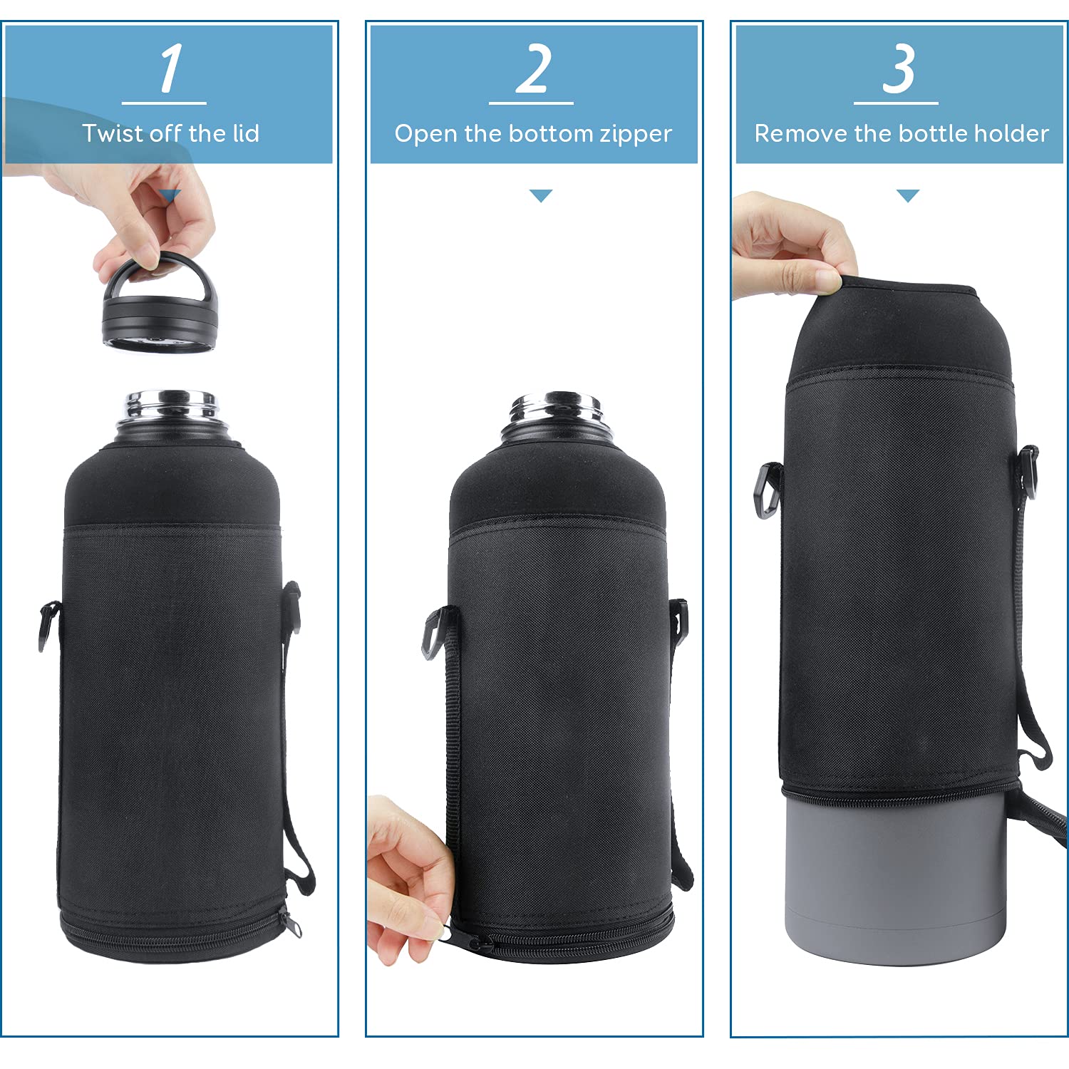 Easy to use : A zip around the base for easy removing the sleeve and safe carrying after installation.The adjustable elastic bottle cap straps can regulate the bottle and keep bottle stable and balance.