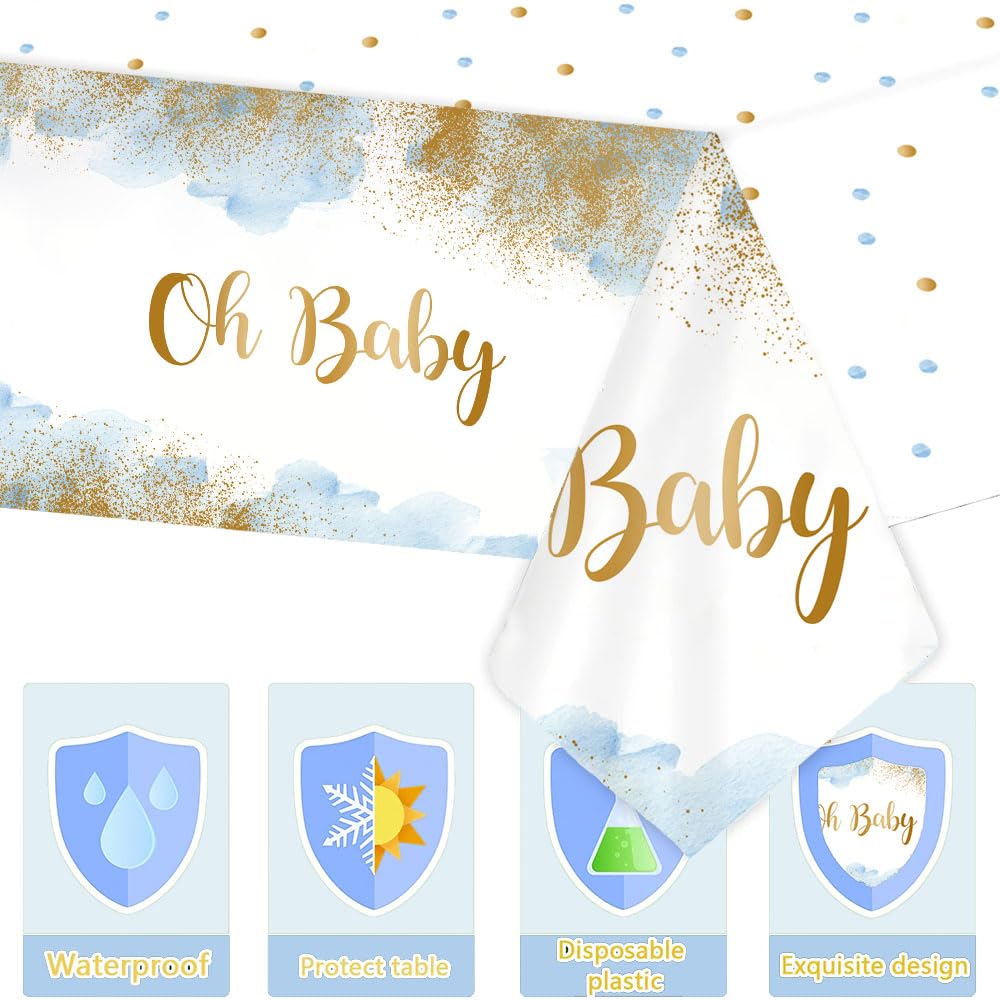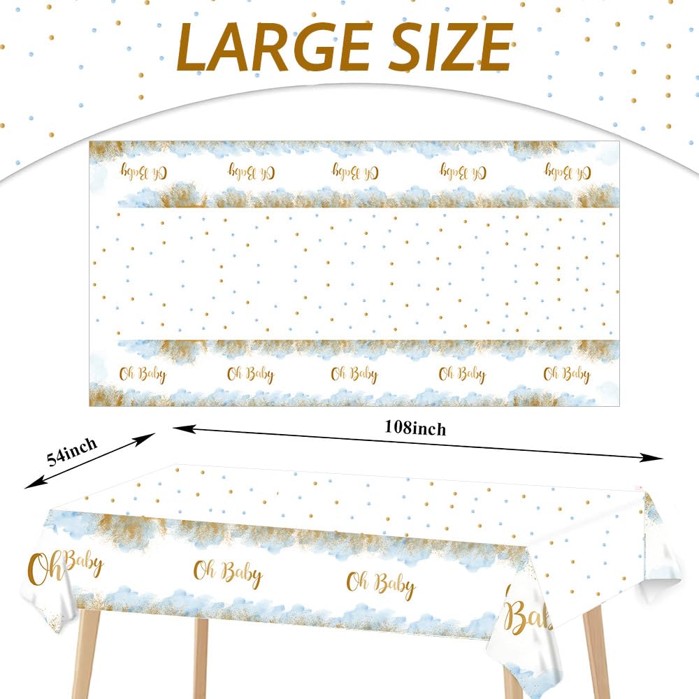 Package Includes: The baby shower decoration includes 3 PCS blue oh baby tablecloths, enough for your party use and replacement.Blue baby shower party tablecloths size is 137 x 274 cm/ 54 x 108 inches, suitable for most tables.