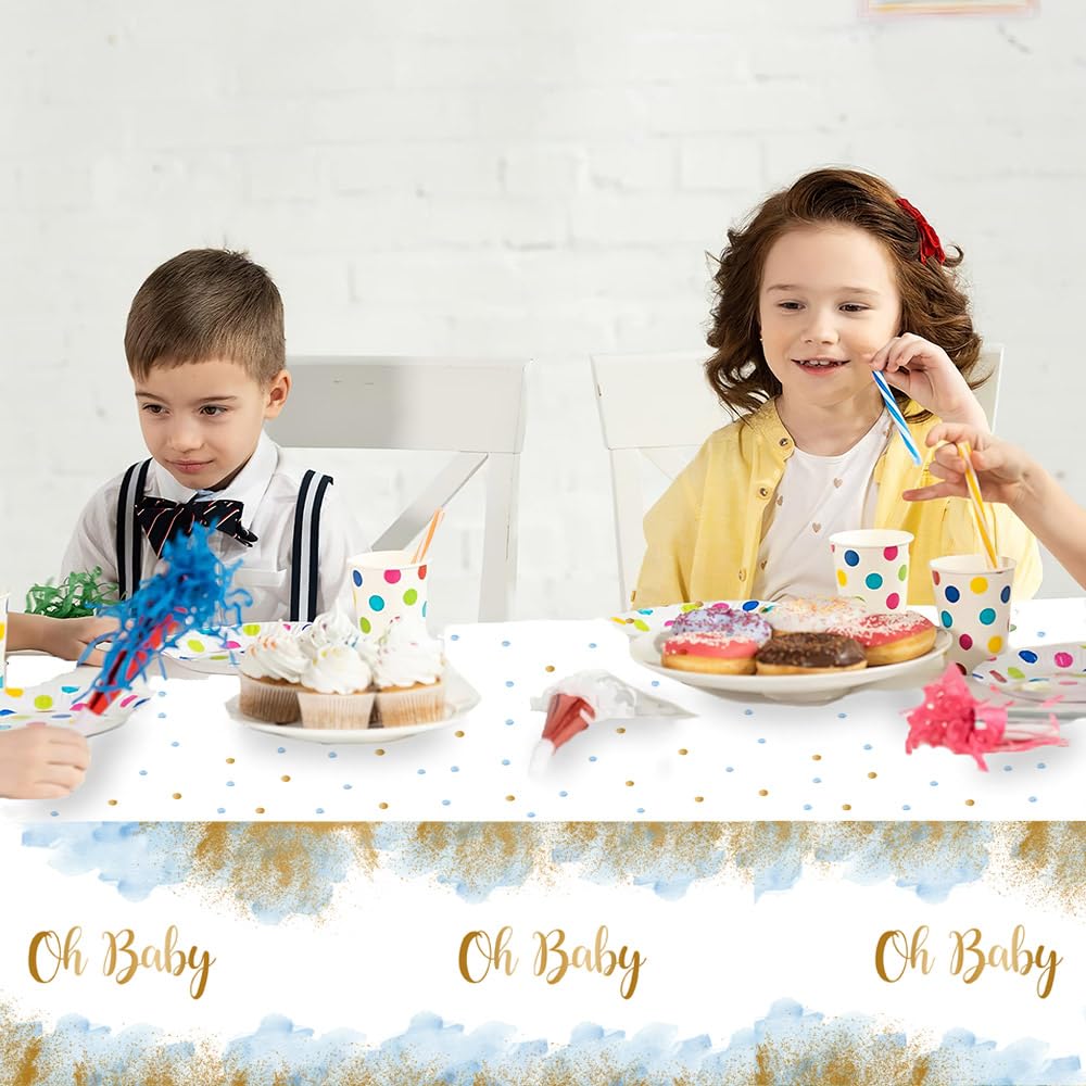 Exquisite design: The baby shower tablecloth are designed with elegant "Oh Baby" and the delicate blue watercolor cloud ,vibrant colors and beautiful printing. It is very beautiful and dazzling, adding a party atmosphere to your baby shower party.