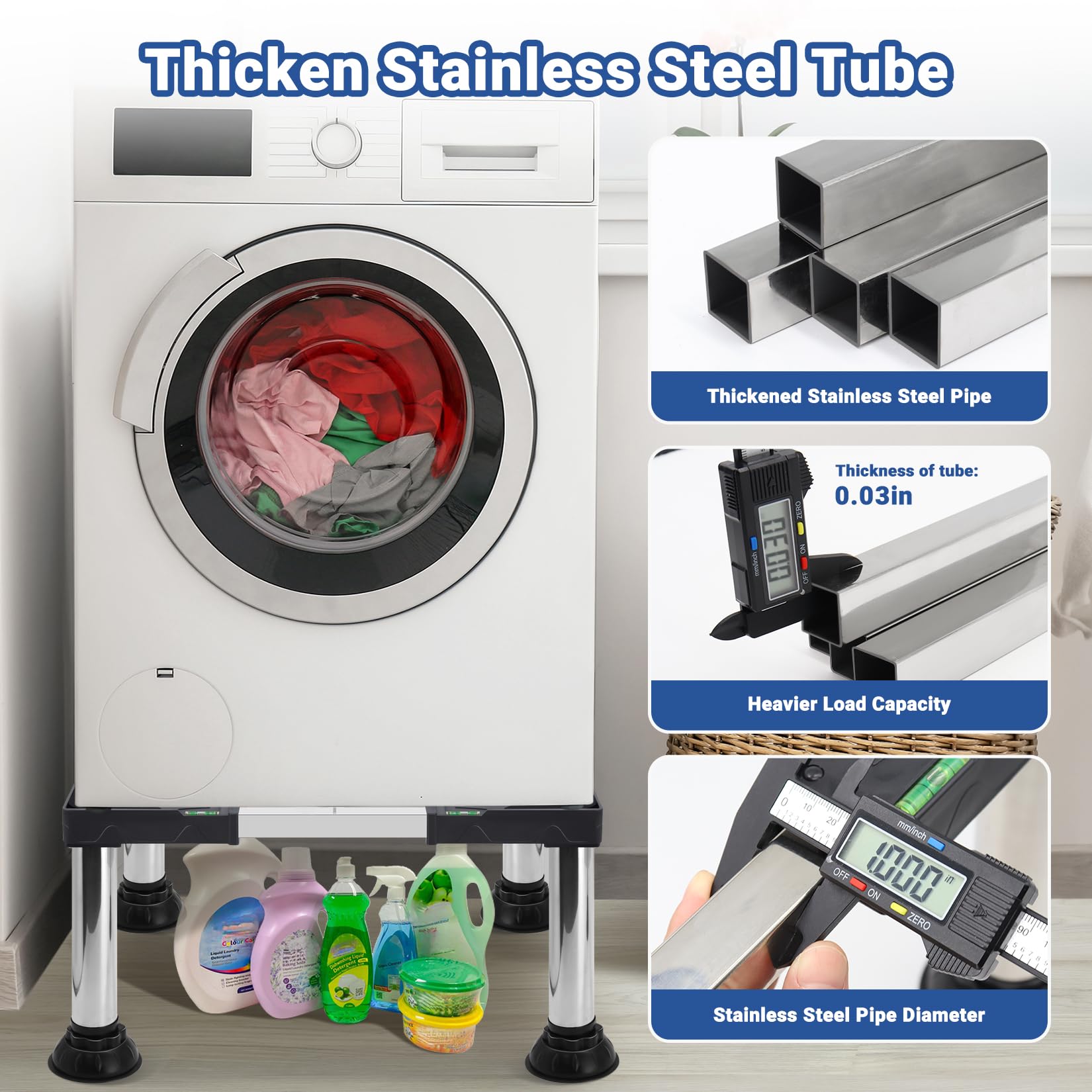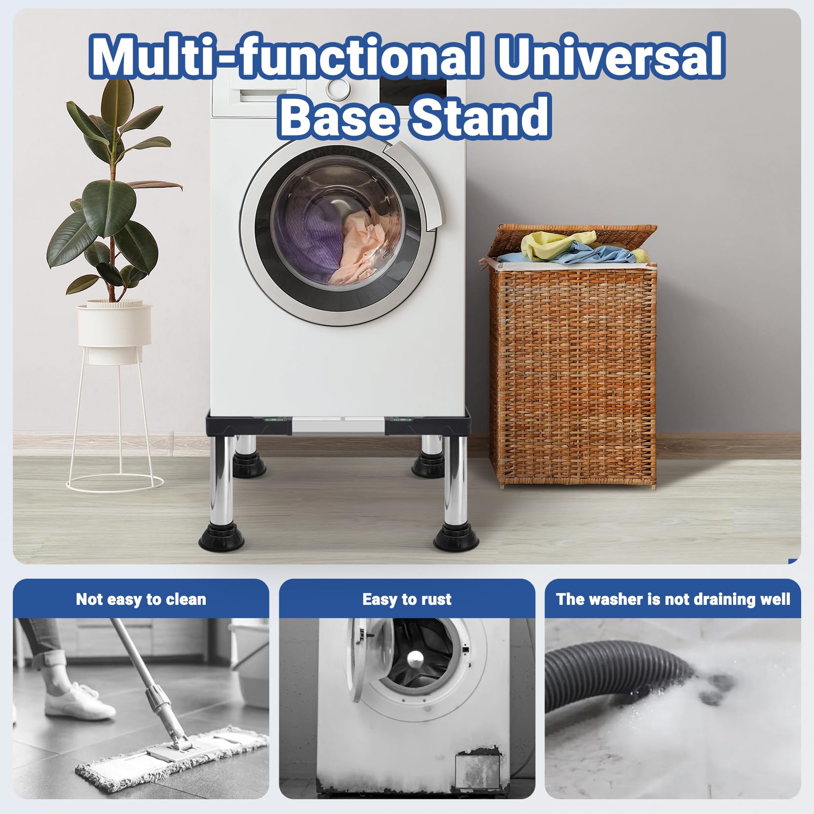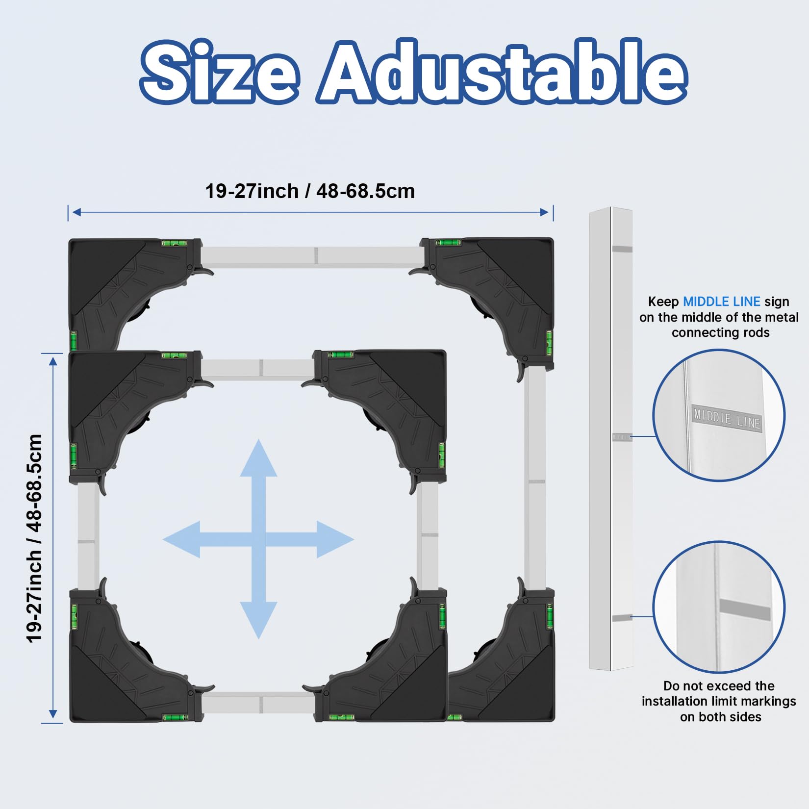 Wide Applications : This new appliance base stand can be adjusted from 19 inches to 27 inches (W&L), ideal as the bottom of portable washing machines, washing machines and dryers, refrigerators, mini refrigerators or other household appliances.