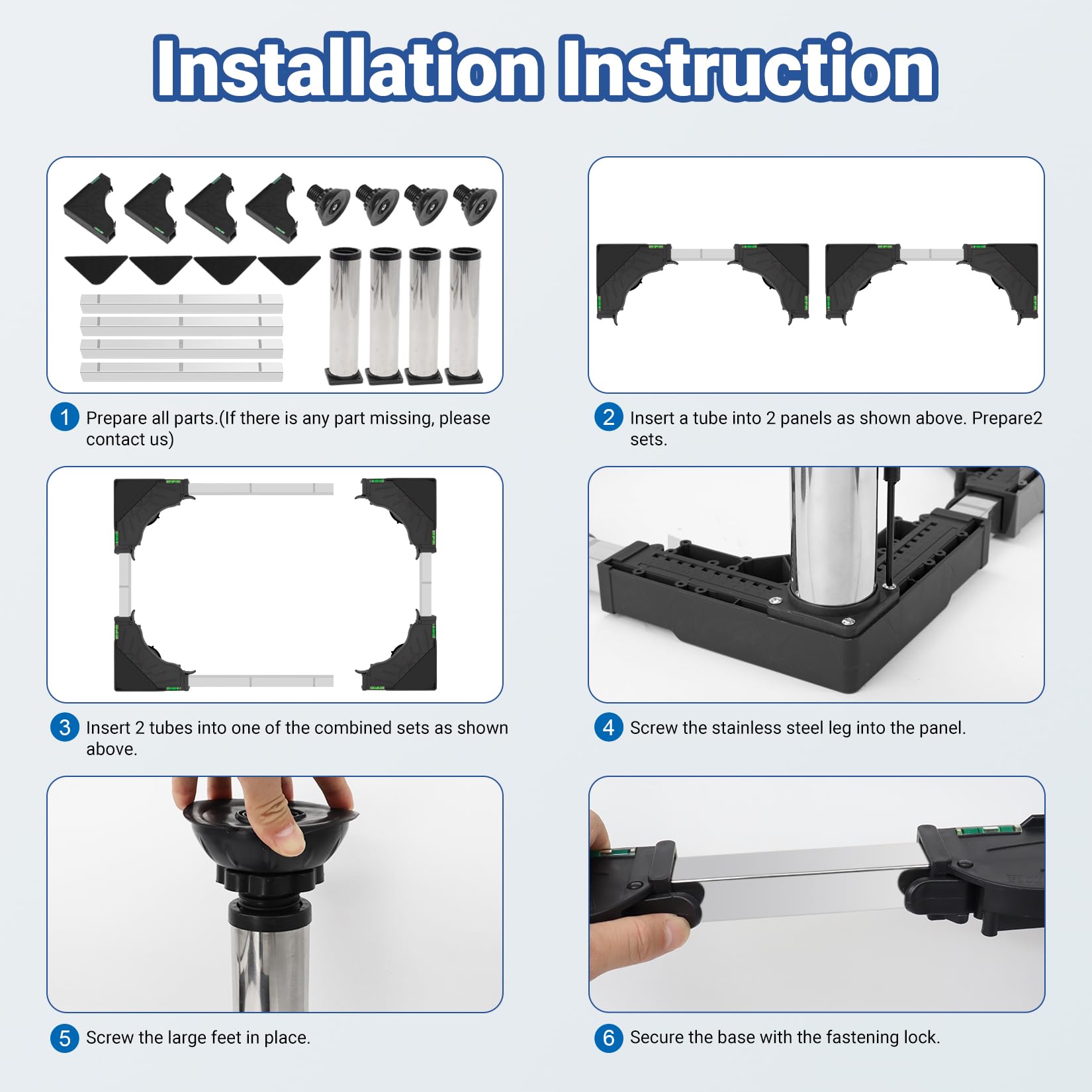 Upgraded and Improved Design - With larger and non-slip feet, longer and thicker Steel tube, Nefish appliance pedestal can load capacity up to 480 lbs. Makes support and stabilize the equipment more firmly and safely.