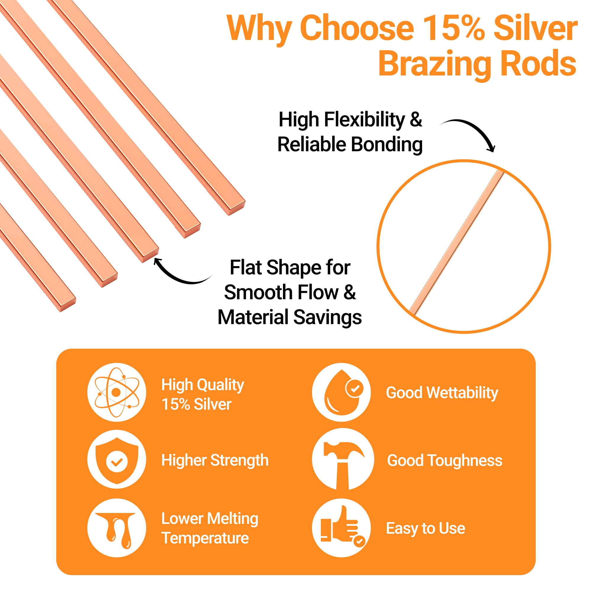 Quality Material â Each brazing rod contains 15% silver for exceptional flow, strength, and heat stability.