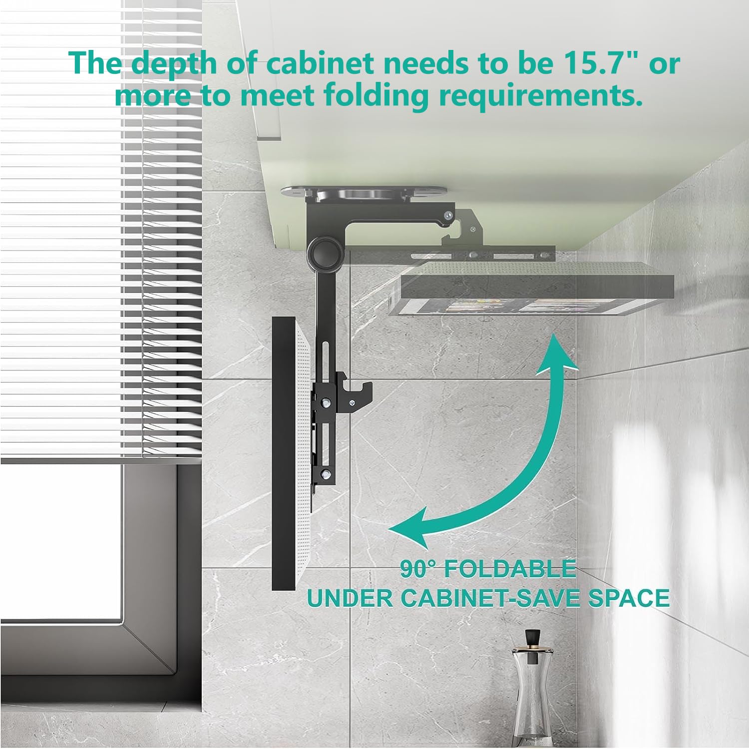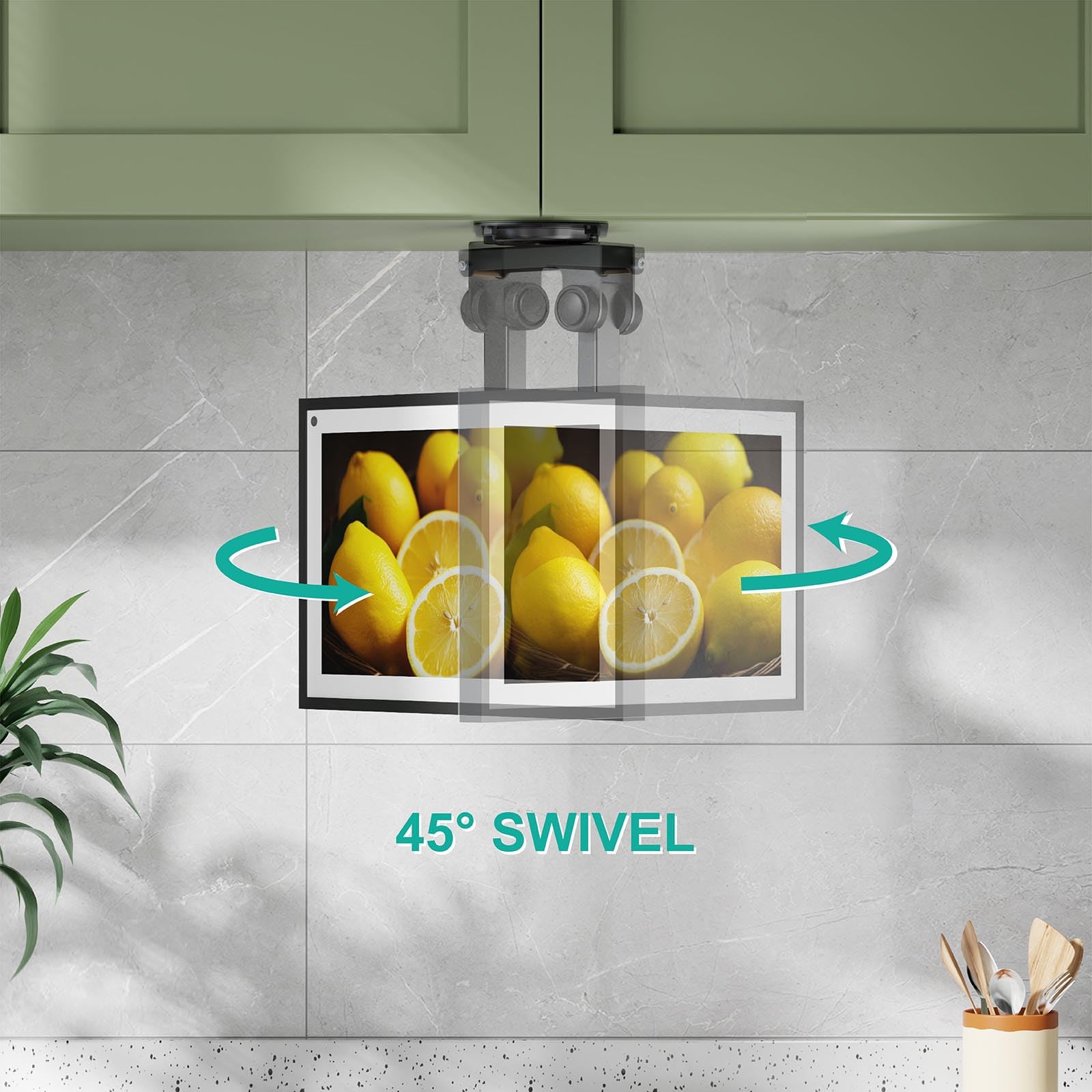 Adjustment: Under cabinet kitchen mount bracket for echo show 21 & 15 allows +45°/-45° swivel and 2.3 inches height adjustable range. The entire stand can be folded back 90°. The device can be flexibly and smoothly adjusted for a better viewing experience.