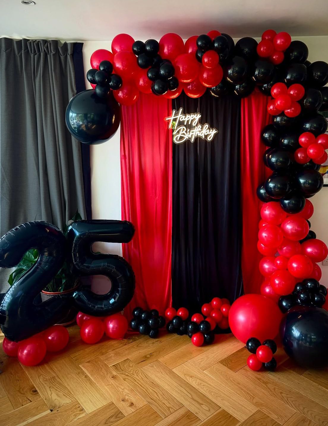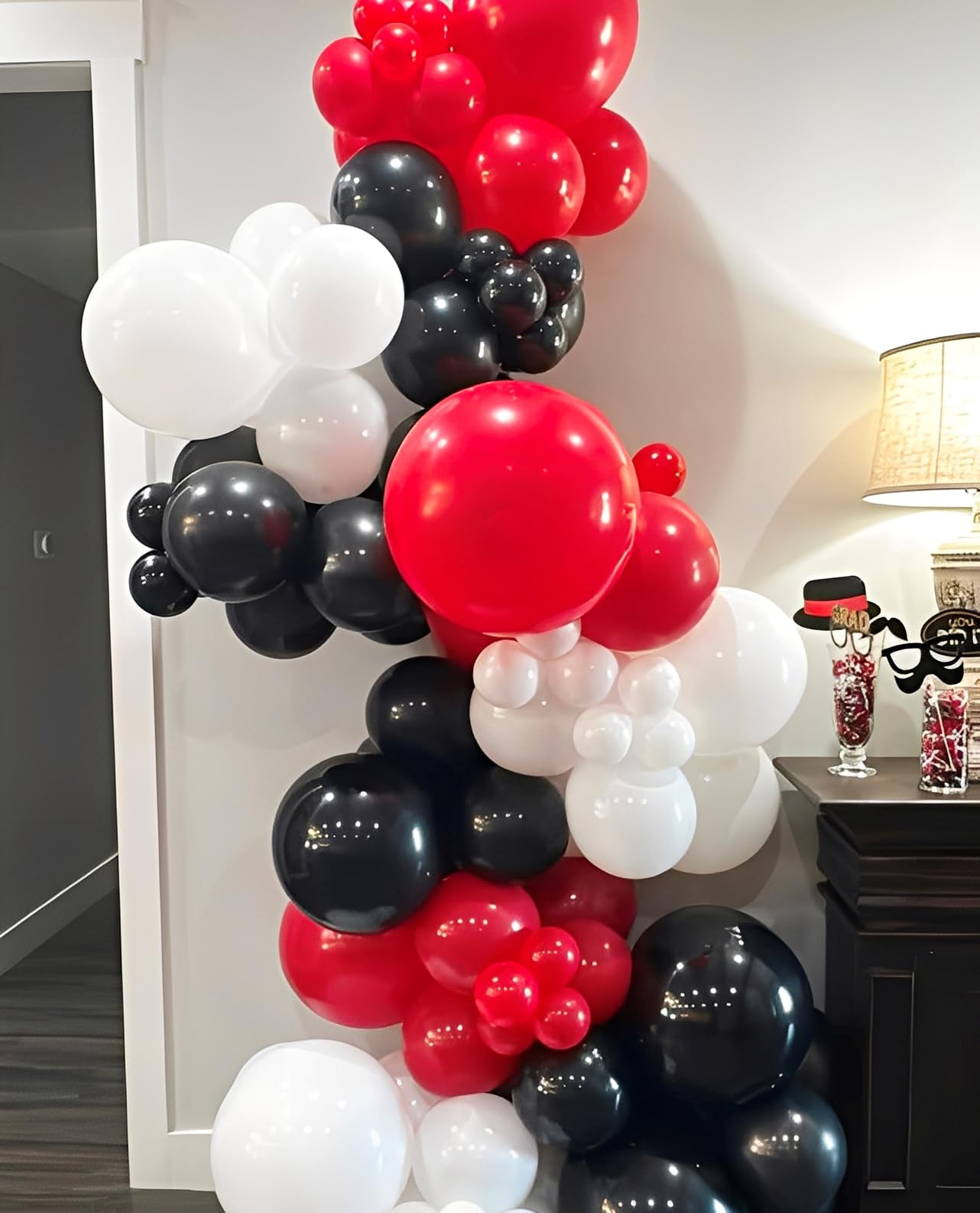 【What You Get】:This item is a decorative balloon intended for adult occasions like weddings and anniversaries. The black red balloons set include :15 pcs black balloons, 15 pcs red balloons, 8 pcs white balloons, 10 pcs black red confetti balloons, 2 pcs heart shaped latex balloons, 2pcs black red balloon ribbon. decorating for your party bash has never been easier! Simply inflate the black and red balloons and scatter them around the venue for an instant transformation. Create balloon bouquets, arches, or backdrops with ease, and impress your guests with minimal effort.