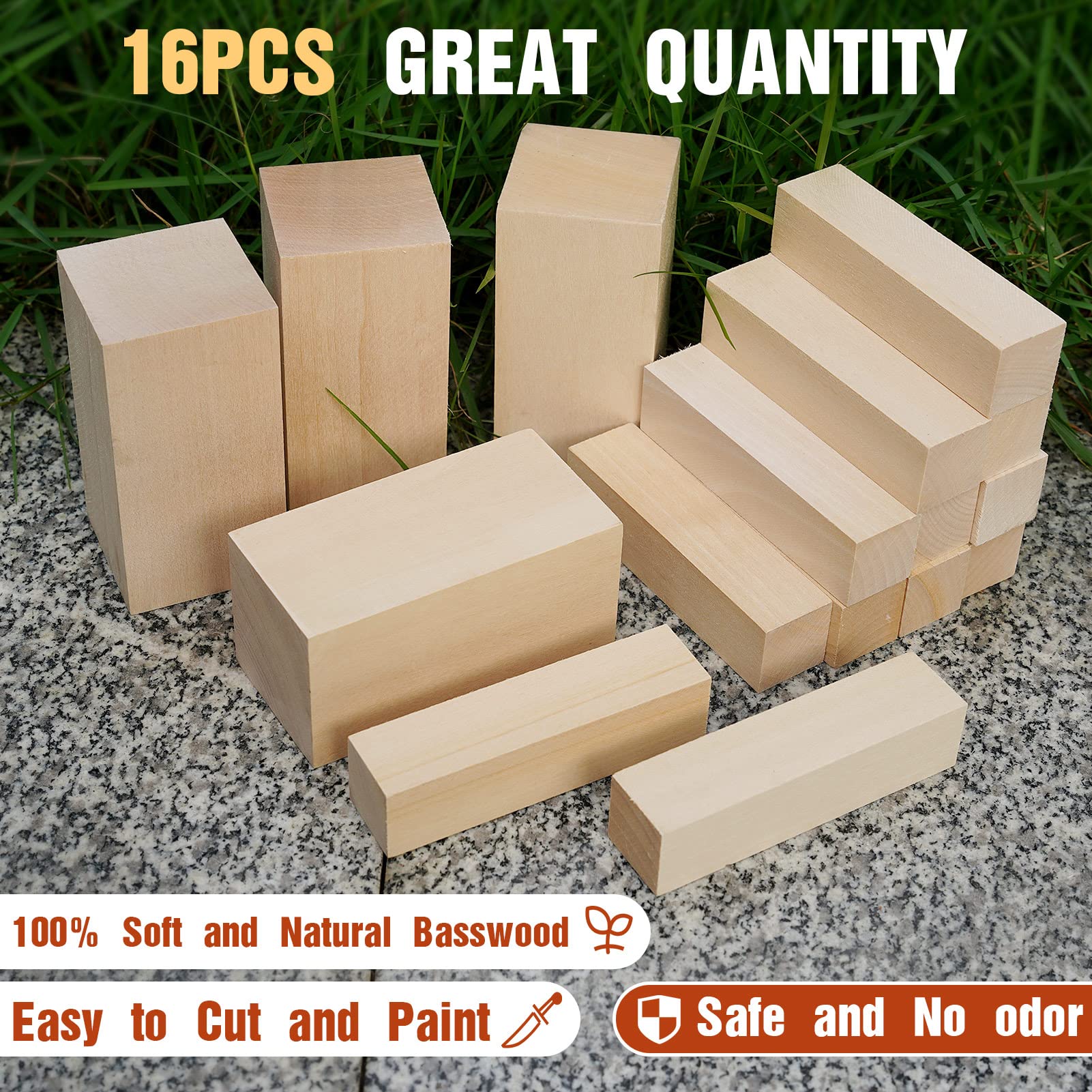 [Basswood Carving Blocks]-Get creative with this 16-piece carving wood set, providing 2 different sizes for versatility. Enjoy 4 rectangle blocks (2''x2''x4'')and 8 rectangle blocks (1''x1'x4'').