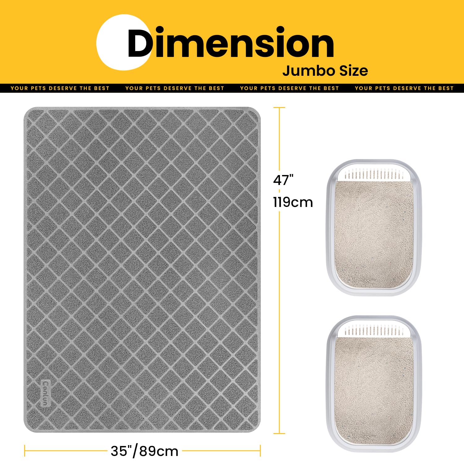 Perfect Size: 47 x 35 inches grey jumbo cat litter trapper mat is designed so it can hold the litter on the mat and keep your floor clean.