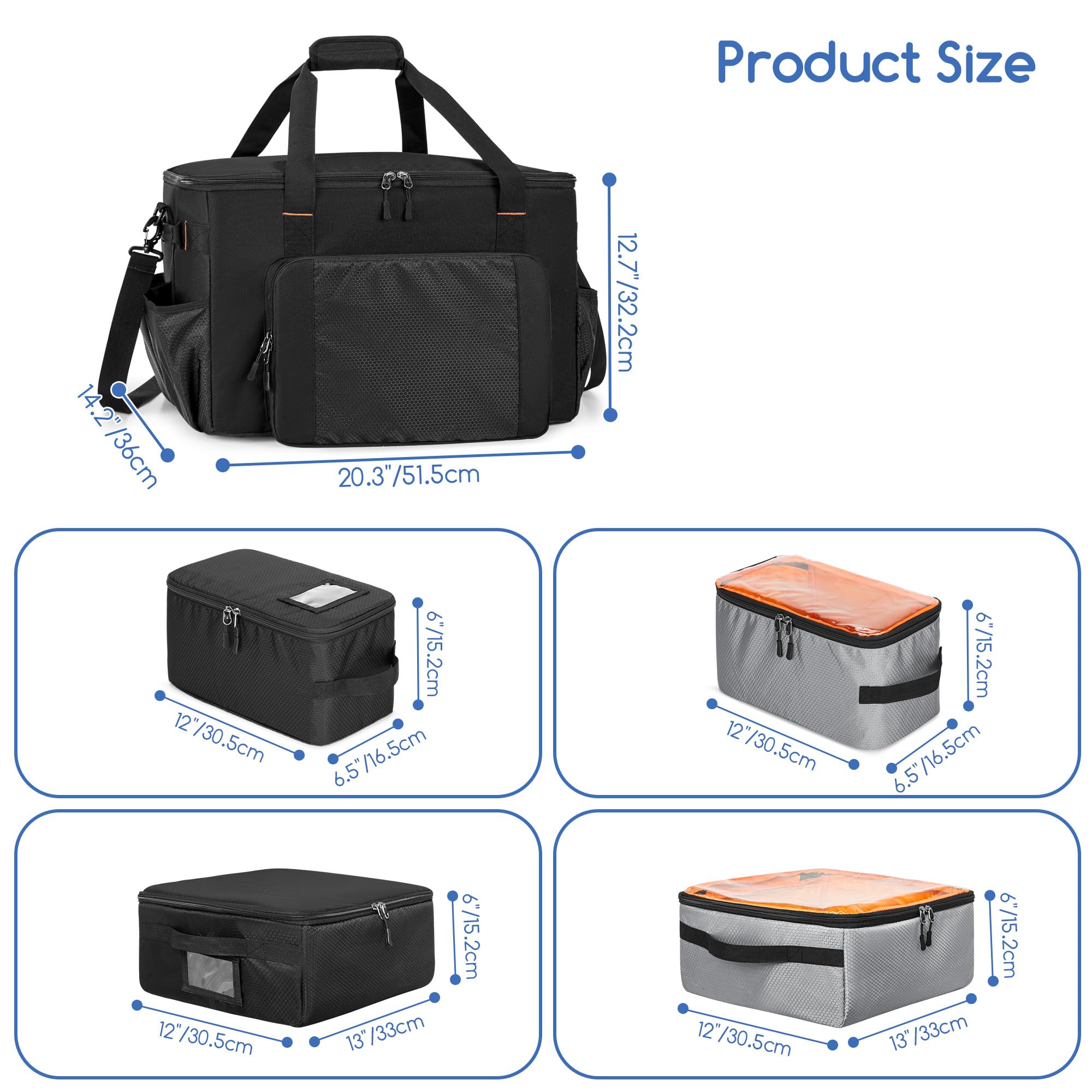 KEEP ITEM GEAR TIDY: Dimension: S: 12”*6.5”*6”, M: 13”*12”*6”, Extra large external storage bag: 20.3”*14.2”*12.7”; Made of strong 600D fabric; Two-way zipper can be fully opened to keep everything organized and separated
