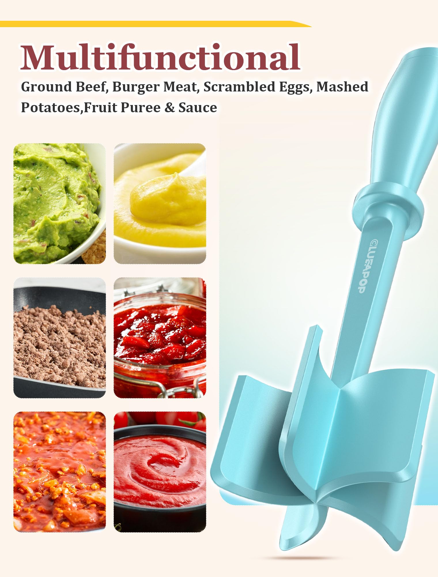 ๐๐ฎ๐ฅ๐ญ๐ข๐๐ฎ๐ง๐๐ญ๐ข๐จ๐ง๏ผThis hamburger meat chopper is a great Kitchen utensil tool to ensure consistent results every time. With this ground beef masher, it not only will be pretty easy to chop all kinds of meat for fast cooking, such as ground beef, turkey, chicken, hamburger, but also ideal for mixing and mashing other food types like gelatin, fruits and vegetables etc