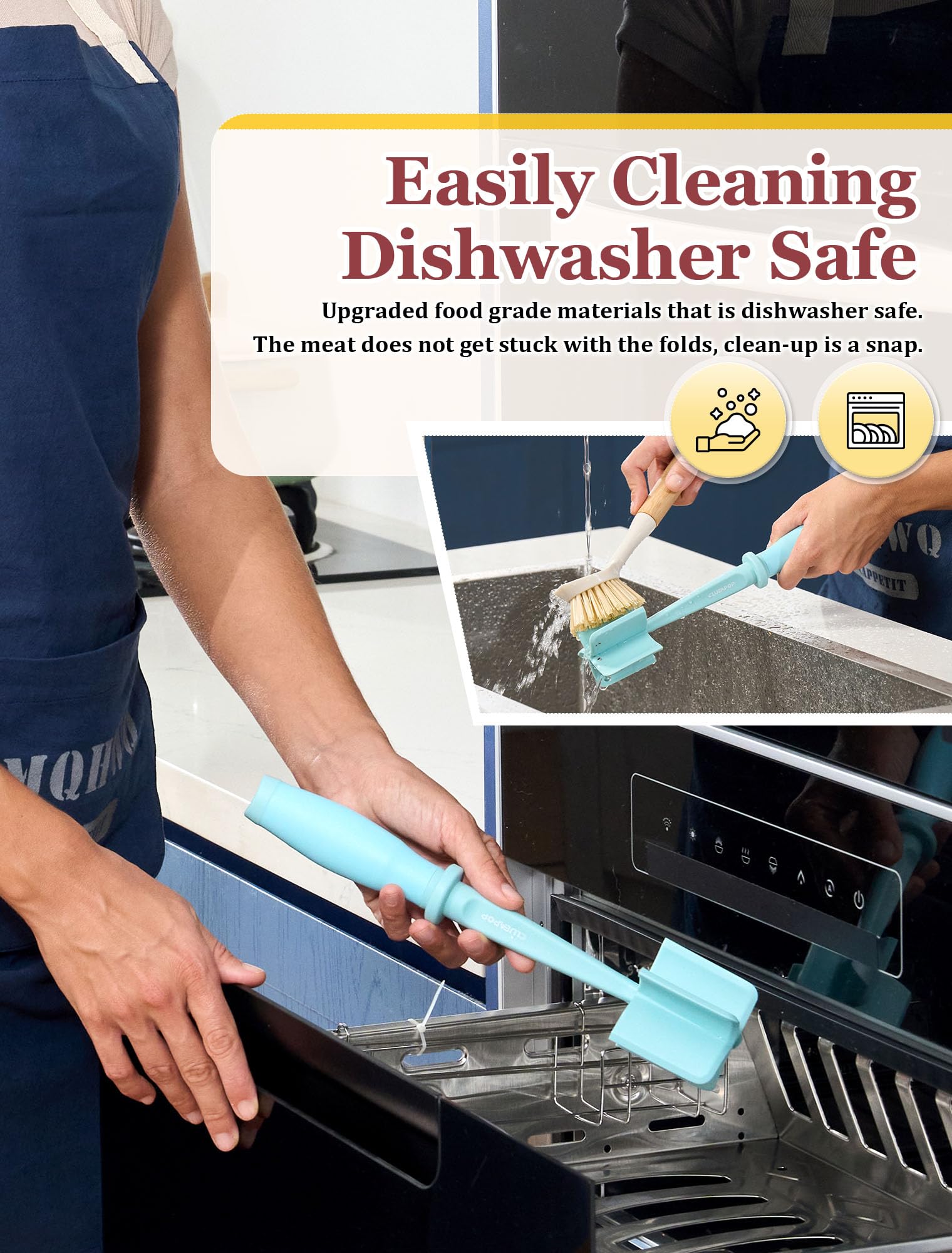 ๐๐๐ฌ๐ฒ ๐ญ๐จ ๐๐ฅ๐๐๐ง๏ผWe understand the importance of convenience in the kitchen. That's why our ground beef smasher is designed with easy cleaning in mind. Its dishwasher-safe components make cleaning a breeze, saving you time and effort so you can focus on enjoying your culinary creations. Besides, Our meat spatula chopper is compact and doesn't take up much room, making it perfect for smaller kitchens or for those who prefer to keep their countertops clutter-free