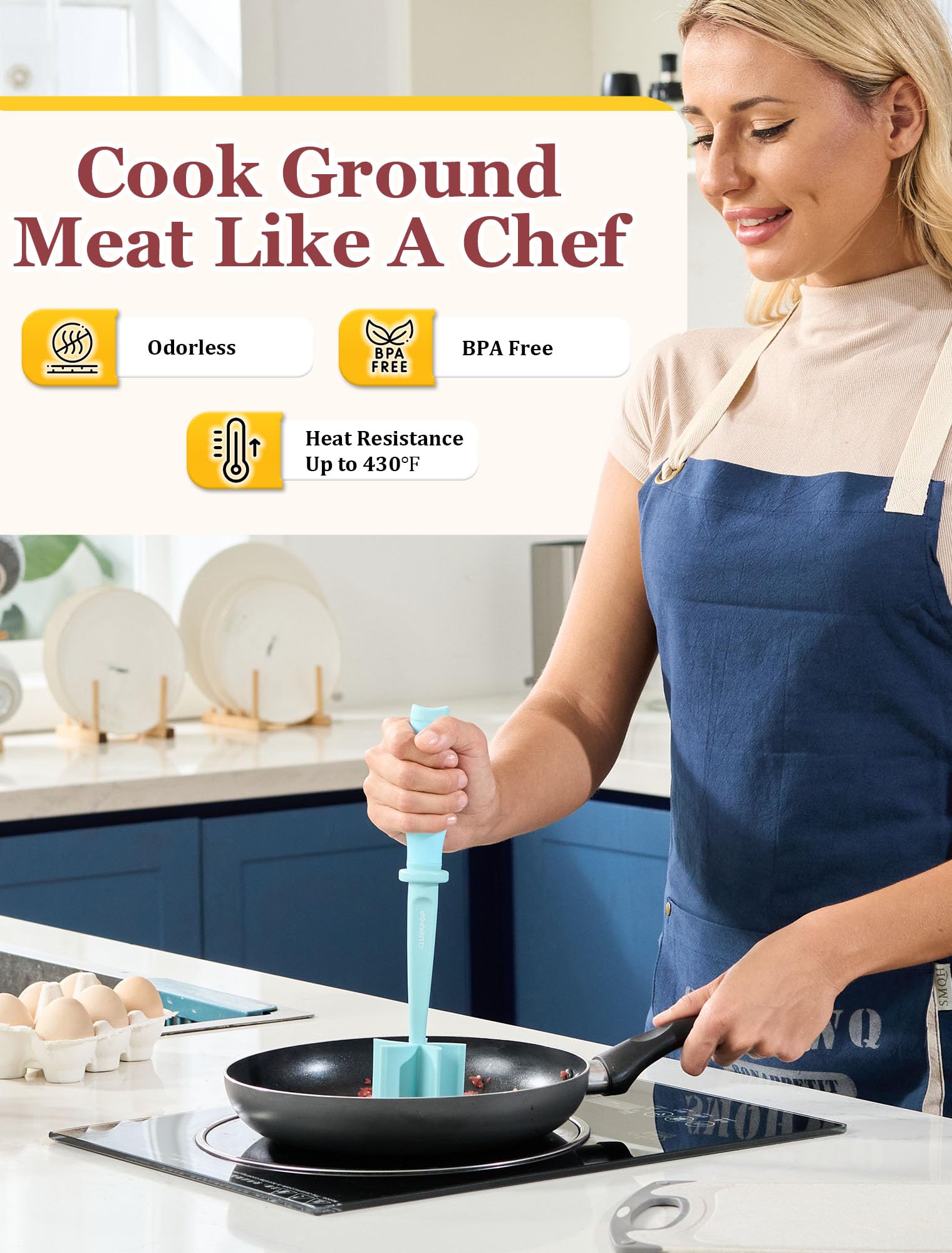 ๐๐๐๐ ๐๐๐ญ๐๐ซ๐ข๐๐ฅ & ๐๐๐๐ญ ๐๐๐ฌ๐ข๐ฌ๐ญ๐๐ง๐ญ๏ผMeat Masher made of food-grade nylon, non-stick, odorless, BPA free. And will not deform even at high temperatures (Maximum Temperature: 430 deg. F) We prioritize the quality of our products, and our ground meat chopper is no exception. Made from high-quality nylon materials, it is built to withstand regular use and last for years. Invest in our durable ground meat smasher and you'll have a reliable mix and chop kitchen tool that will consistently deliver outstanding results