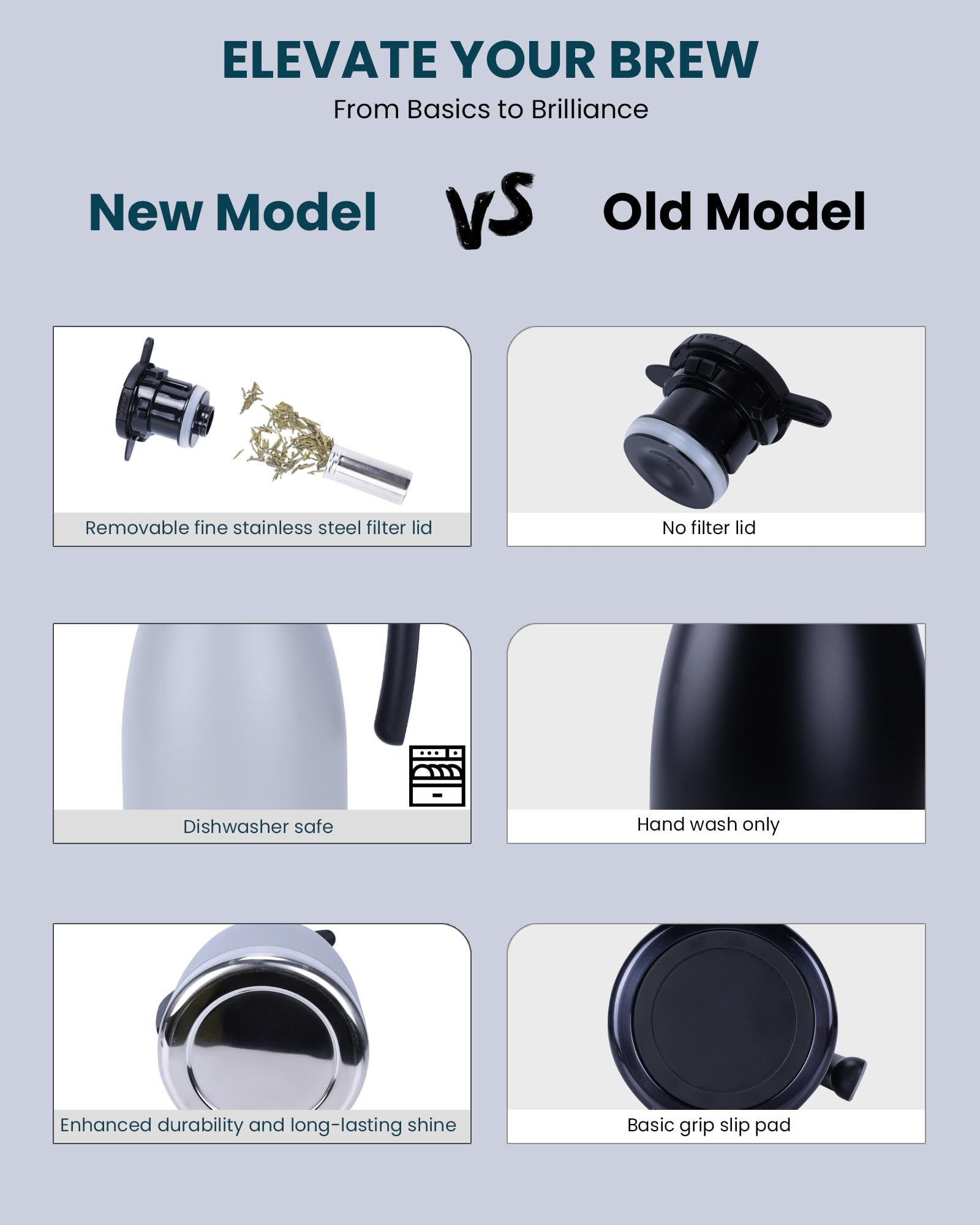 🍵 Detachable Filter for On-the-Go Tea Brewing – Features a removable/detachable filter, making it a convenient tea infuser carafe and insulated teapot; easily removed for thorough cleaning, no tea residue—ideal for repeated use in busy environments. Dishwasher-safe components simplify post-use care.