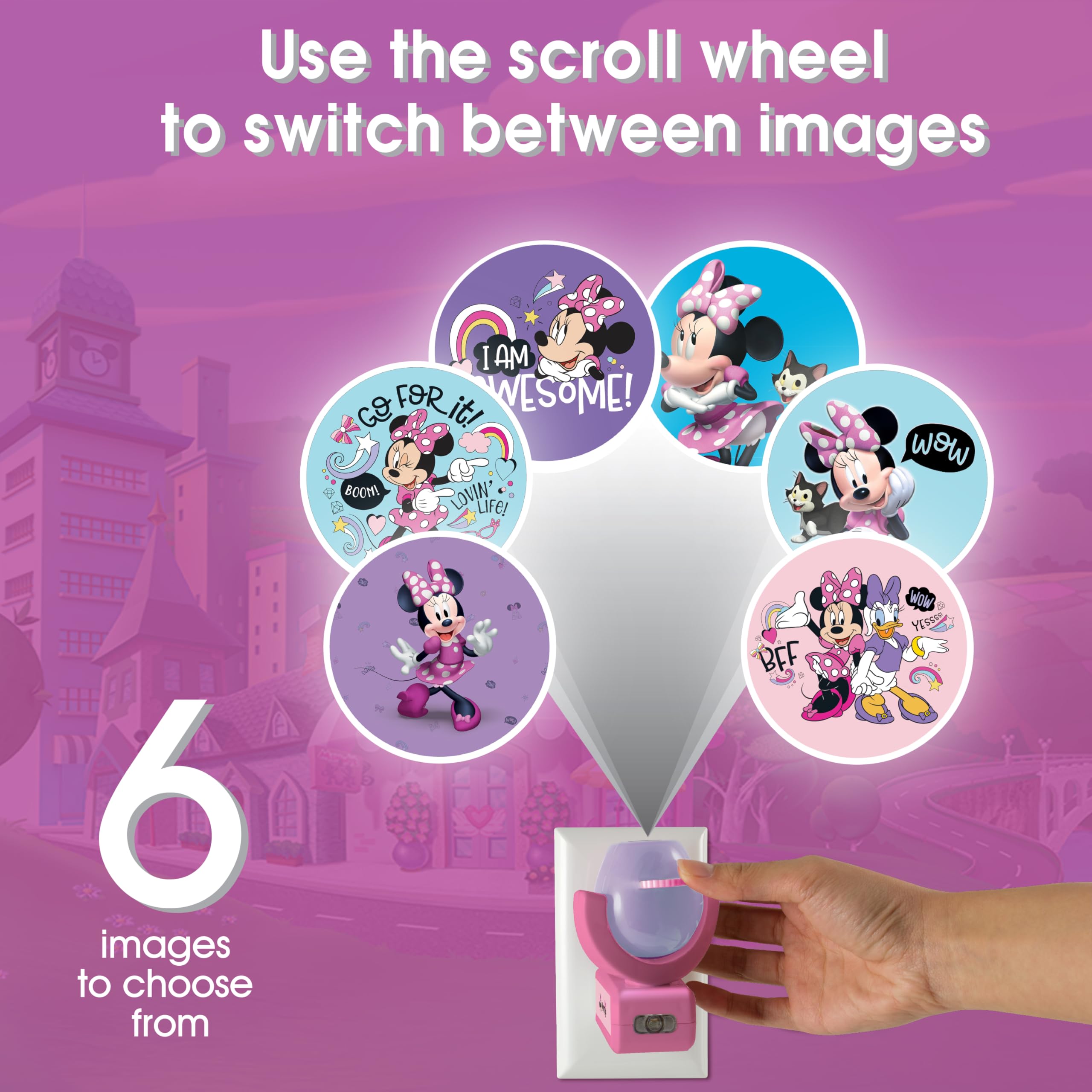 MINNIE MOUSE CHARM – Let your favorite projected image of the loveably iconic Minnie Mouse guide your way at night and lull you to sleep when you climb into bed—perfect for bedrooms, playrooms, nurseries and more