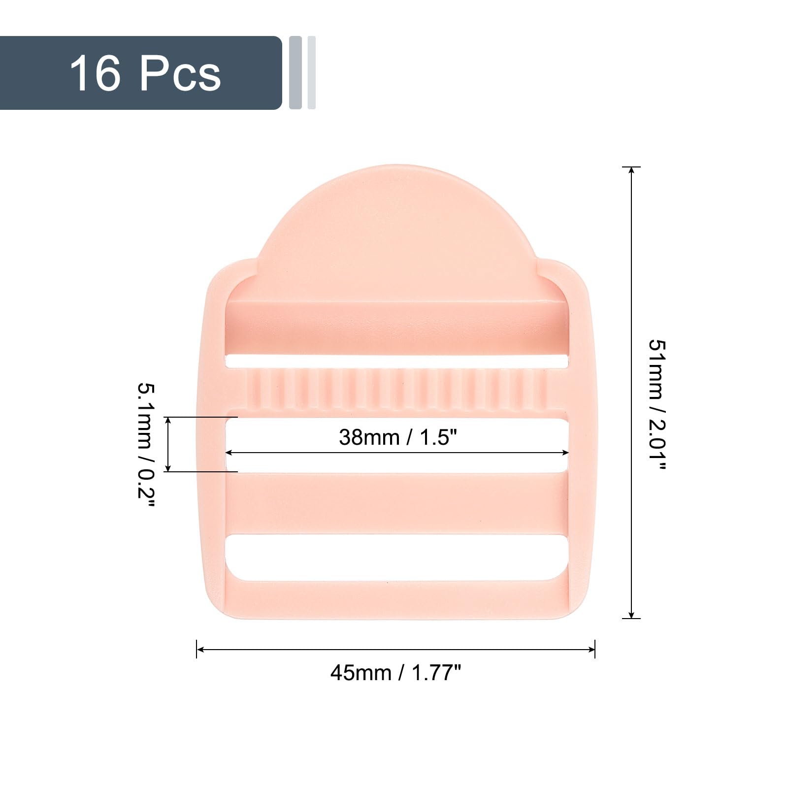 Plastic Ladder Slider: The package contains 16Pcs x adjustable lock buckles, the applicable webbing size is 25mm / 0.98", the inner size is 25x5mm / 0.98x0.2" (L*W), and the overall size is 40x30mm / 1.57x1.18" (L*W).