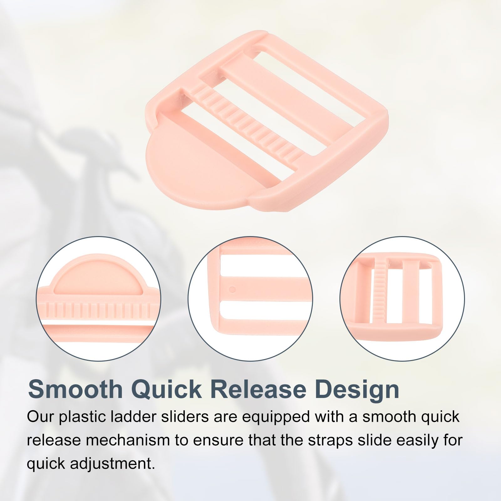 Smooth Quick Release Design: Our plastic ladder sliders are equipped with a smooth quick release mechanism to ensure that the straps slide easily for quick adjustment, and a variety of beautiful colors can match various styles of backpacks.