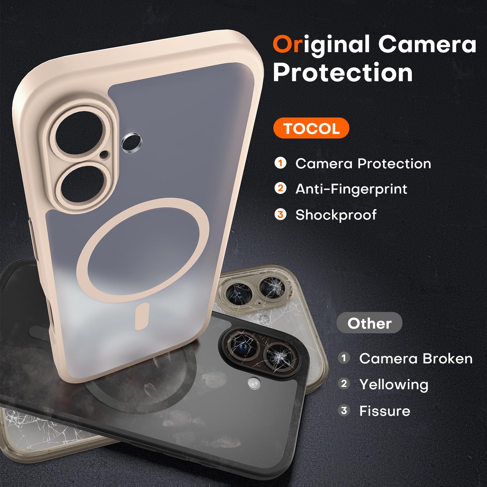 Designed for Camera Safety: TOCOL case for iPhone 16 upgraded camera surround protection, integrated with the case. The camera frame is 0.8mm higher than the camera lens, which can protect your most precious camera lens from scratches and collisions