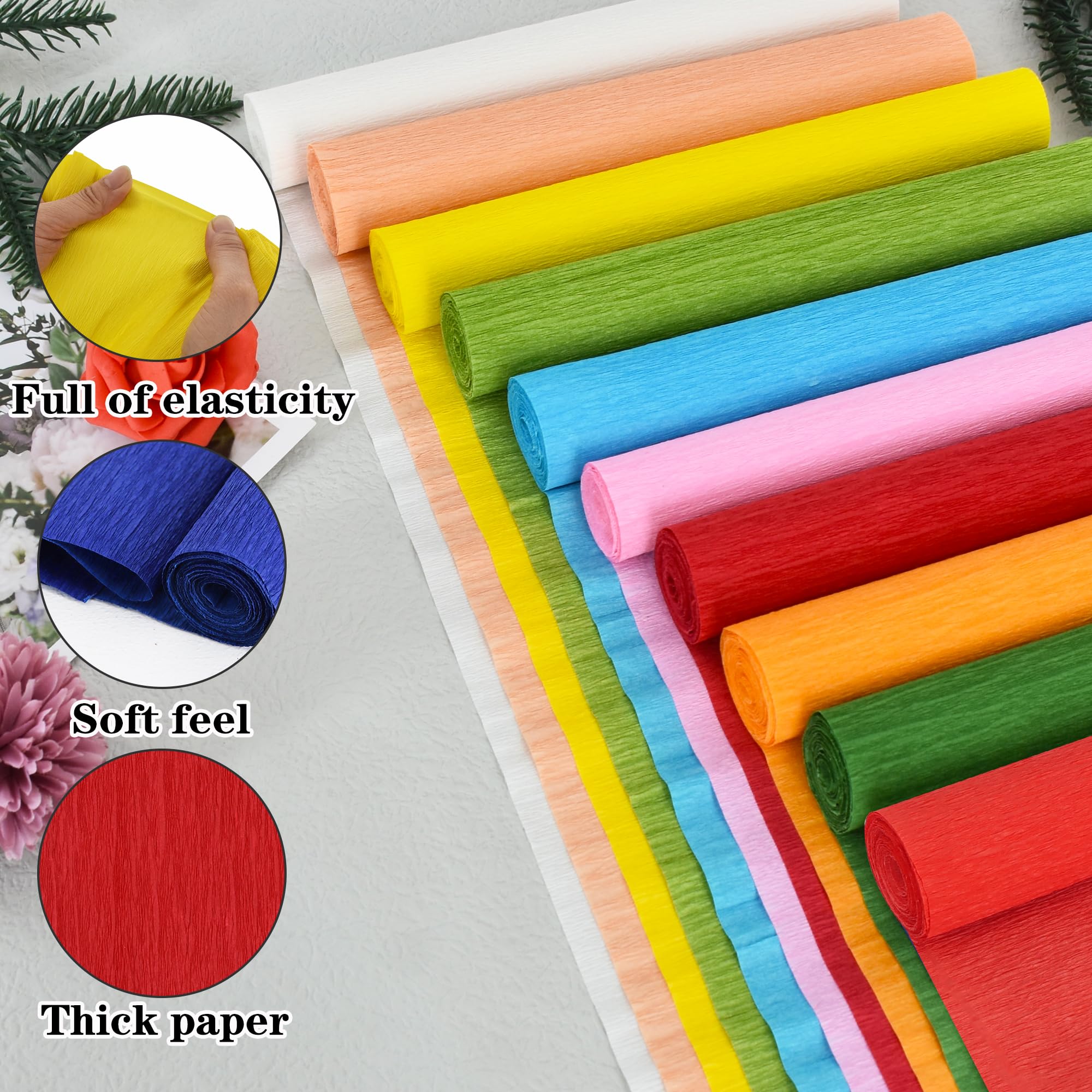 【Quality】The crepe paper is made of high-quality paper, which is not easy to tear or fade, and is soft enough, so you can also cut them into the size or shape you want.