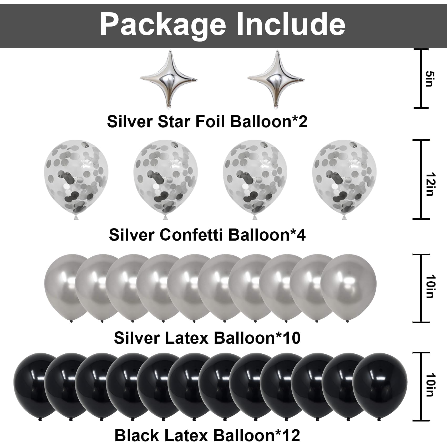 What our kit includes: This mysterious 16th happy birthday balloons decor package includes ‘HAPPY BIRTHDAY’ banner*1 set, number 16 foil balloons*2, star foil balloons*2, black latex balloons *12, silver latex balloons *10, silver confetti balloons*4, which will meet all your needs