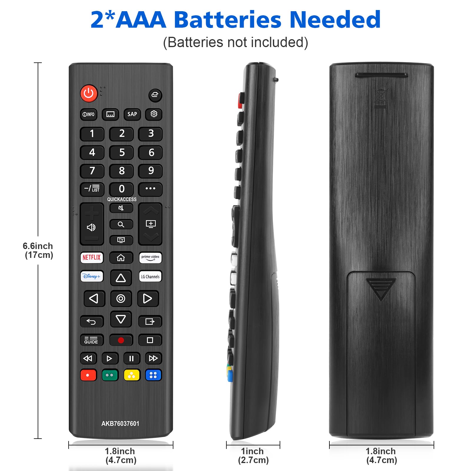 Free of Setup Requirements: This lg tv remote control replacement does not require complicated installation, and you can use it directly after installing 2*AAA batteries (batteries not included). The cover on the back of the remote control has a triangular arrow. Push the cover in the direction of that arrow, then open the cover and install the battery to use it.