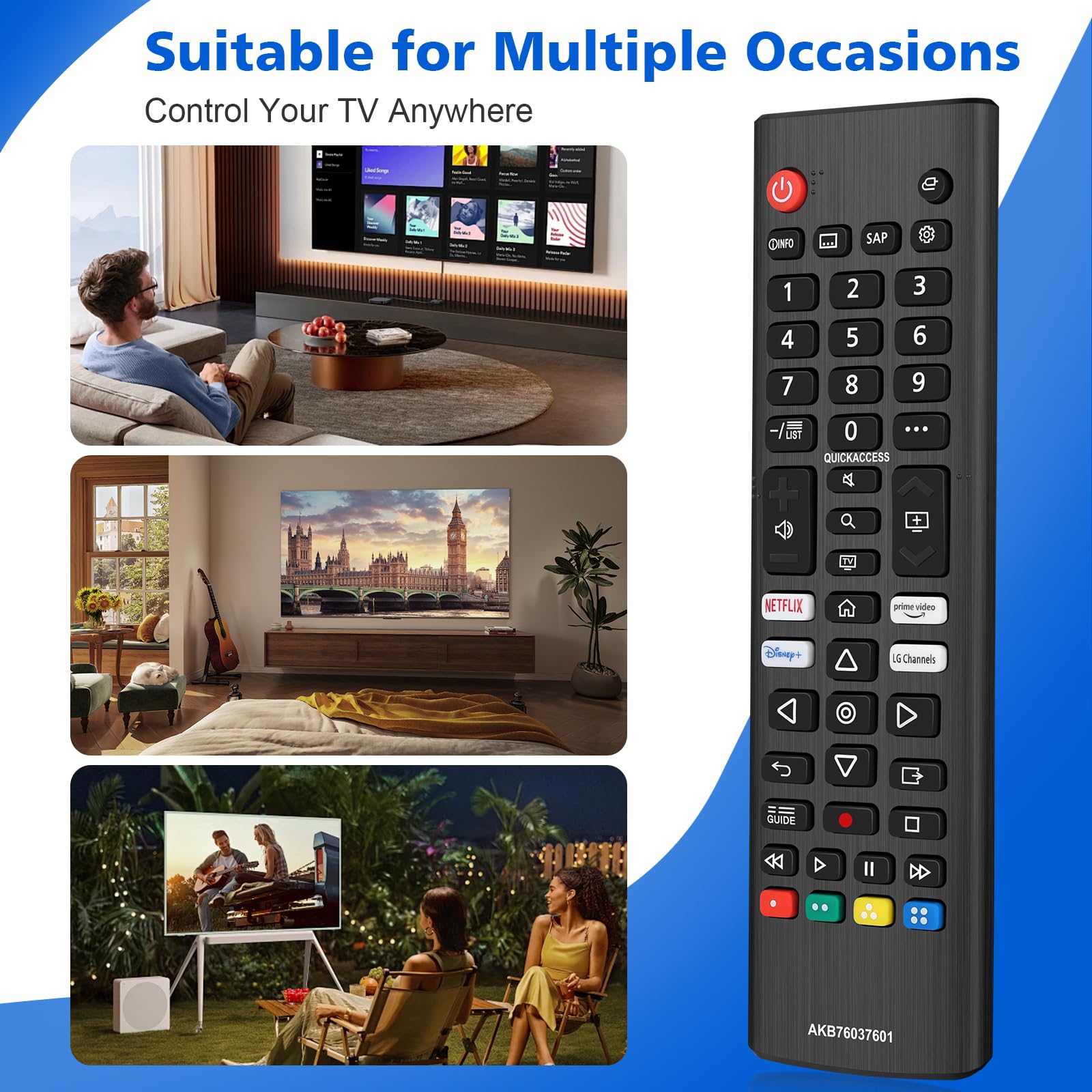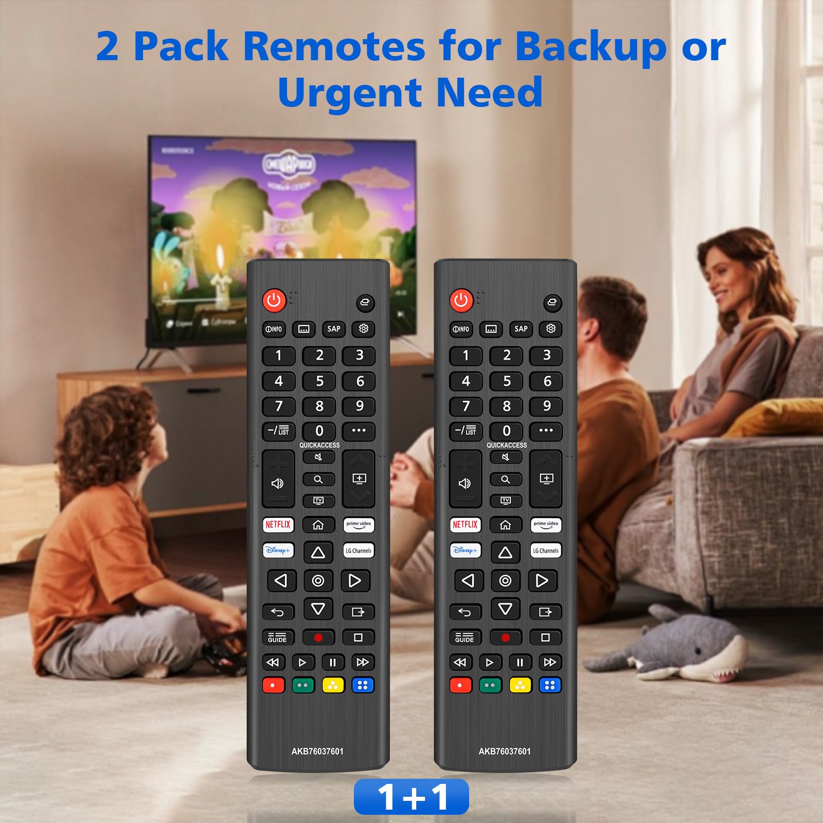 Fully Functional Universal LG TV Remote: Imagine sitting in the yard watching TV with family, watching a game in the living room with friends during your free time. What a happy thing it is. 2 pack remote controls can be used as a backup or replacement for lost or damaged remote. And the smart design allow you to comfortably control and access to your favorite channel on the bed or sofa