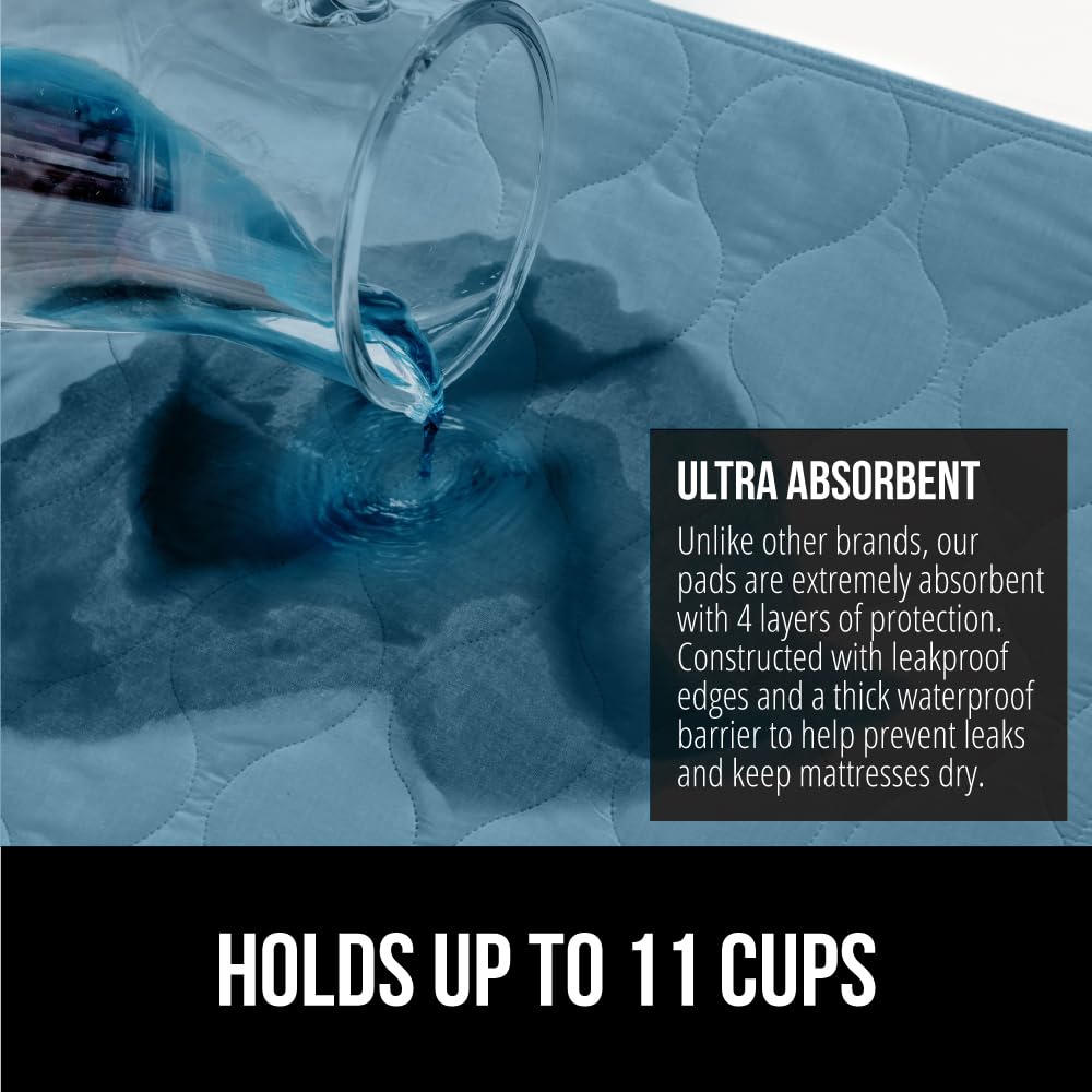 LEAK PROOF PROTECTION: 1 pack; our pad can hold up to 11 cups of liquid, much more than others; moisture is quickly absorbed into the pad and then dispersed throughout, helping to prevent leakage; also features leak proof edges, resilient inner layers and a thick waterproof barrier to offer additional, unparalleled protection that will give you the comfort and security you need