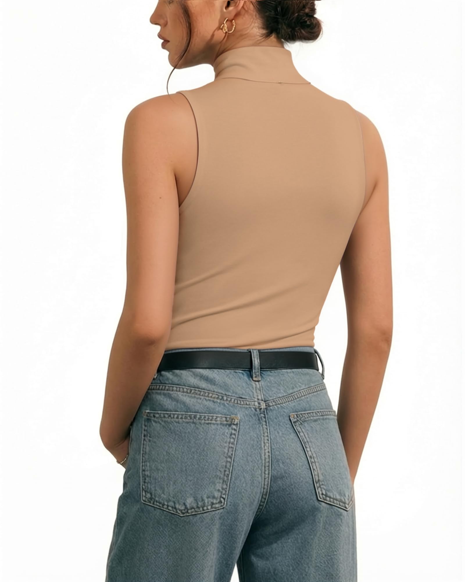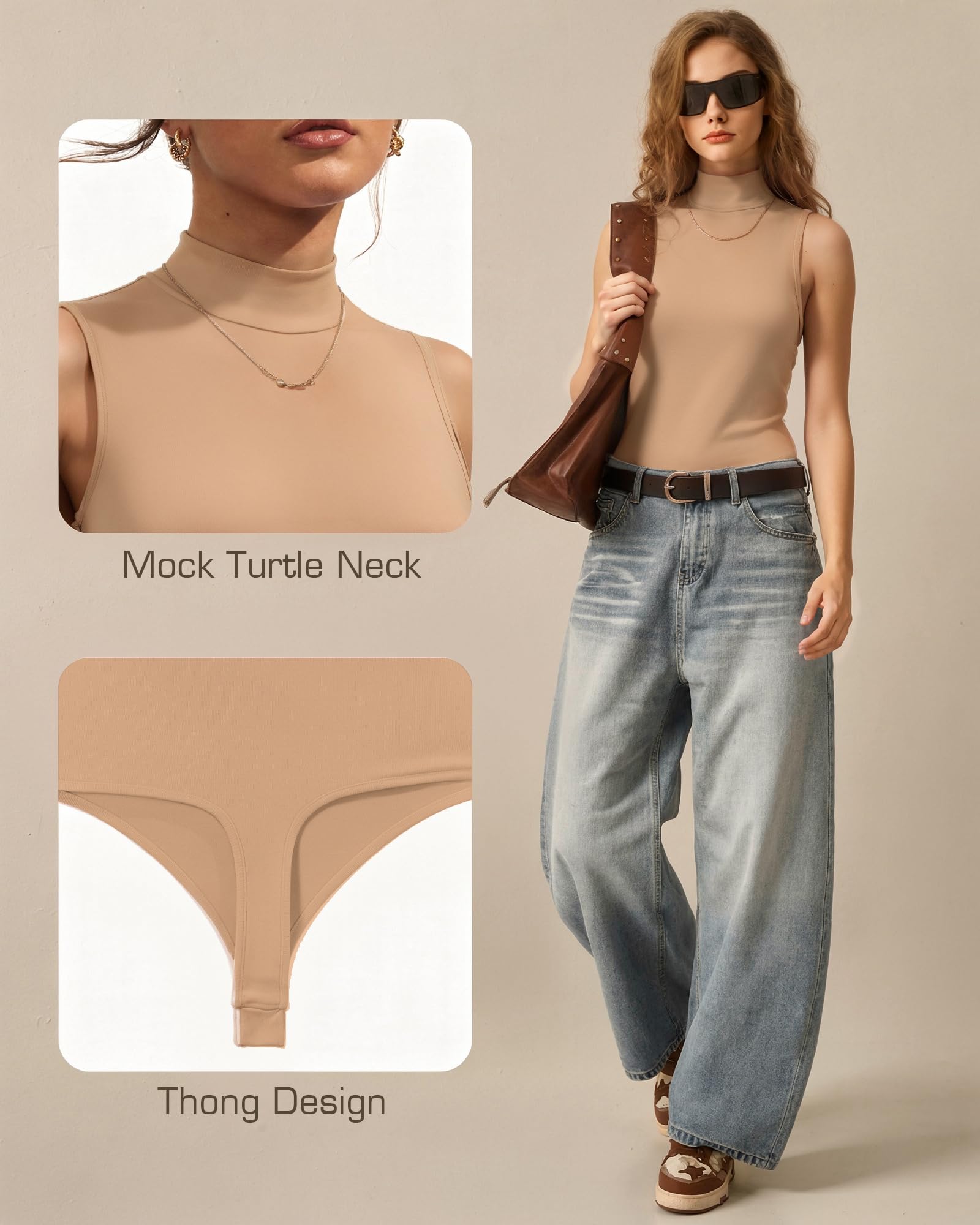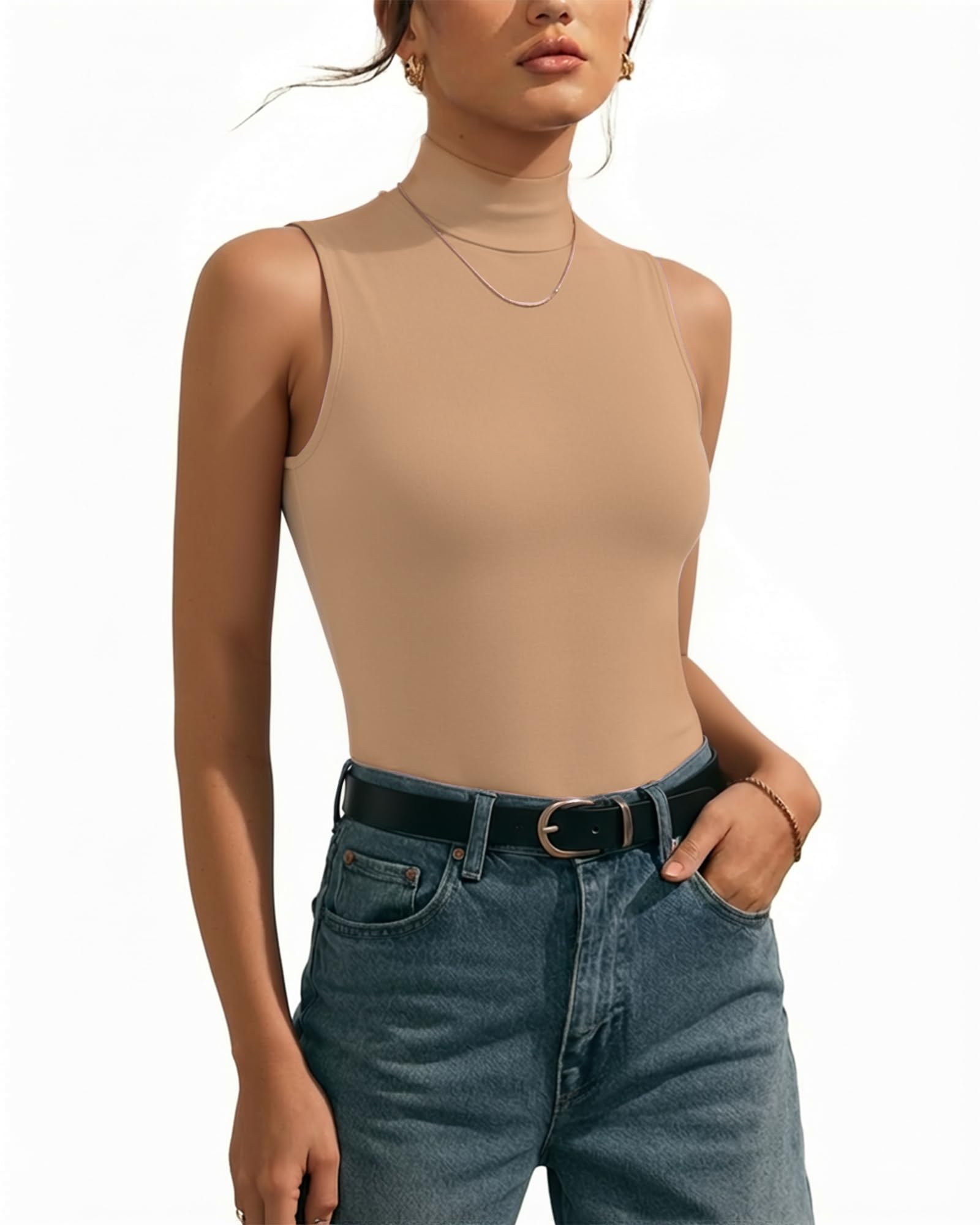 Second-skin Bodysuit Collection: MANGOPOP seamless Mock Turtle Neck sleeveless bodysuit ,offering an incredibly soft, stretchy, lightweight, and breathable feel akin to a second skin