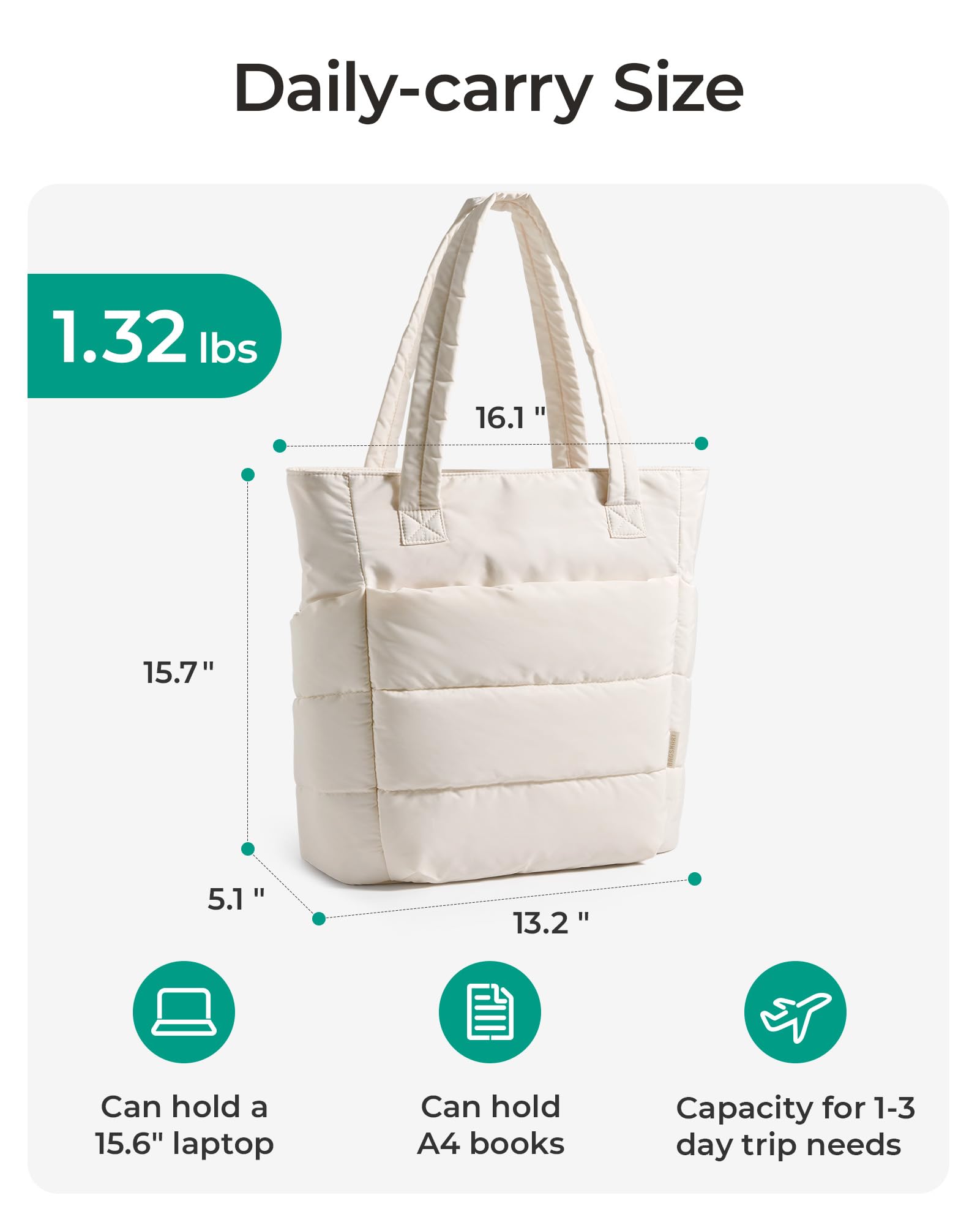 Ultra Lightweight Material : Standard Size and Slim Size weighs only 0.99 pounds. Small Size weighs only 0.79 pounds. Made of durable, soft and light taslan fabric. The puffer tote bag is easy to carry. Good choice of travel bag.