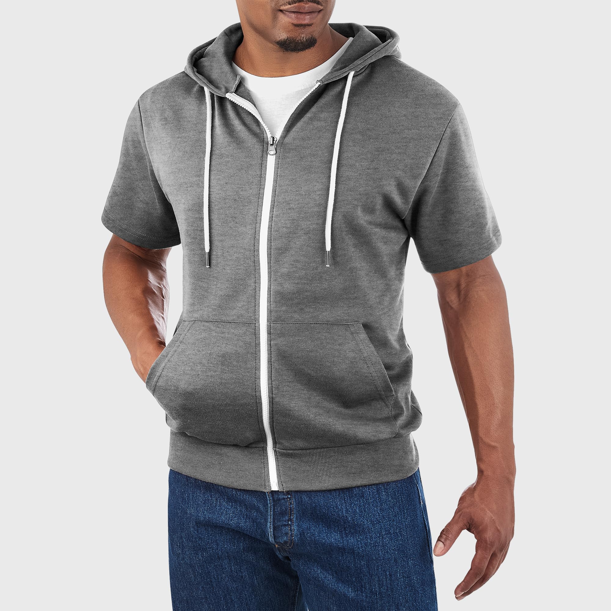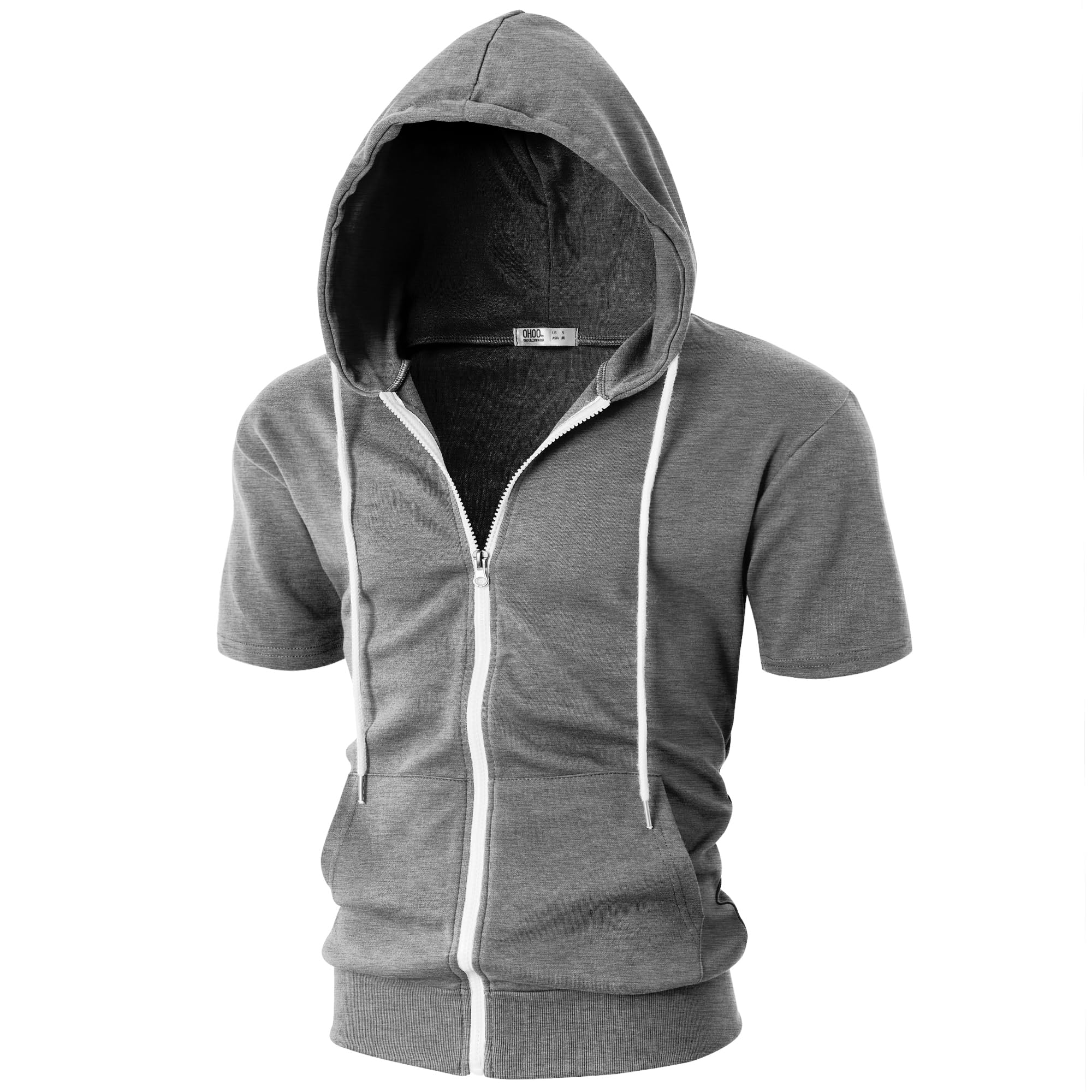Model Number DCF007: Modern Slim Fit, Lightweight, Short Sleeves, Kangaroo Pocket for Convenience, Contrast Color Design (White Zipper/Drawcord)