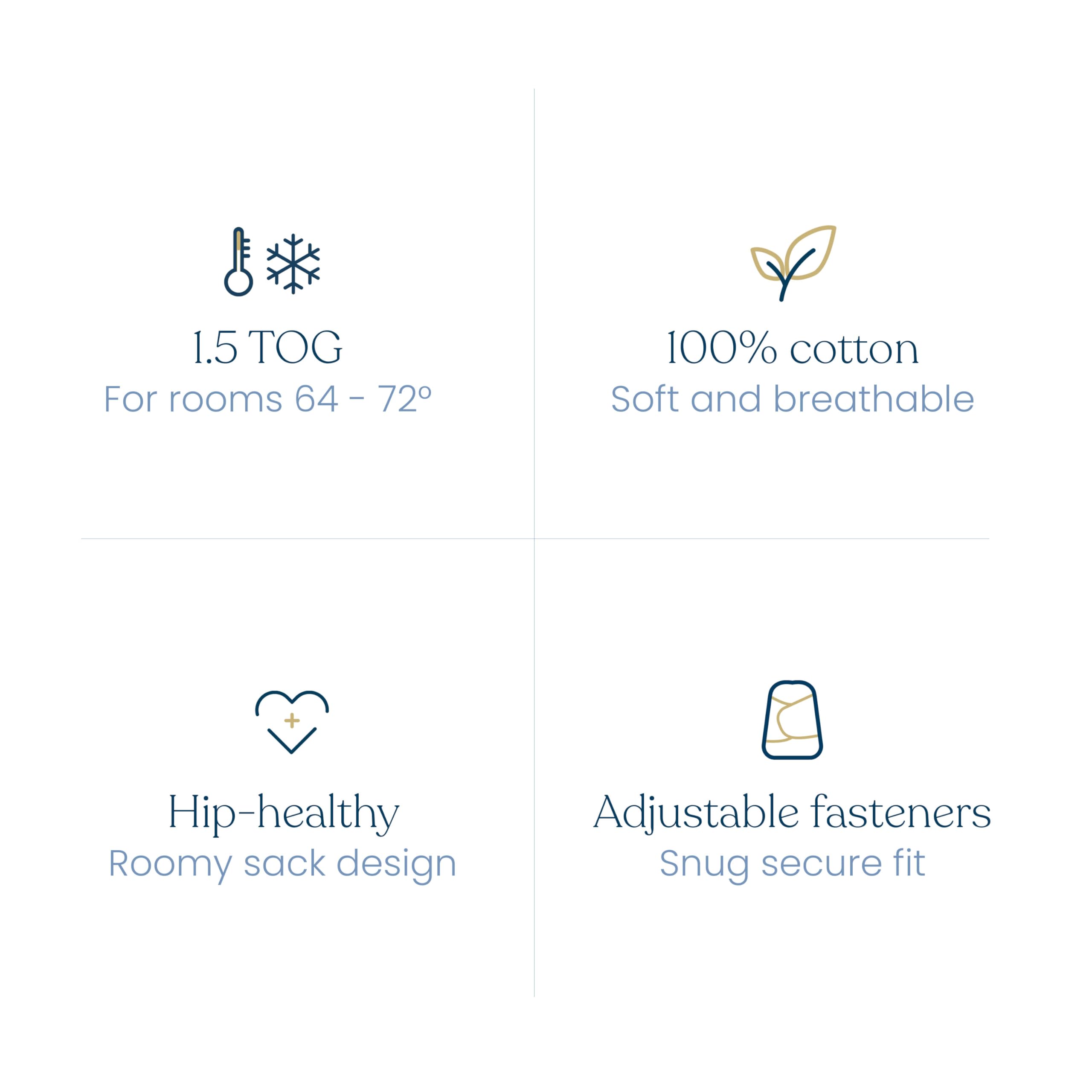 SOFT AND STRETCHY COTTON: Made from 100% cotton with a double-knit construction, offering a cozy and slightly stretchy feel perfect for swaddling. TOG Rating 1.5 (room temperature of 68°-72°F): Suitable for cooler evenings during spring or fall.