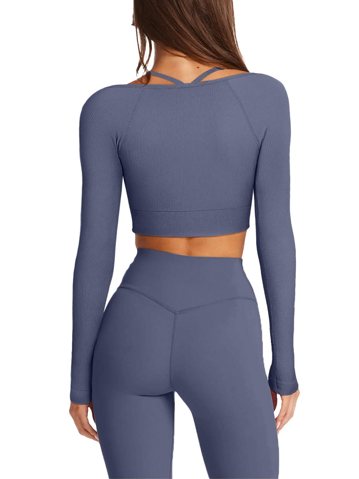 Design:Designed in wide neckline and halter neck,elegantly exposes the collarbone, adding a touch of sexy glamour to the women's crop tops.If you wear a bra with straps on a regular square neck top, it will show through. This long sleeve workout tops is the perfect solution to this problem.