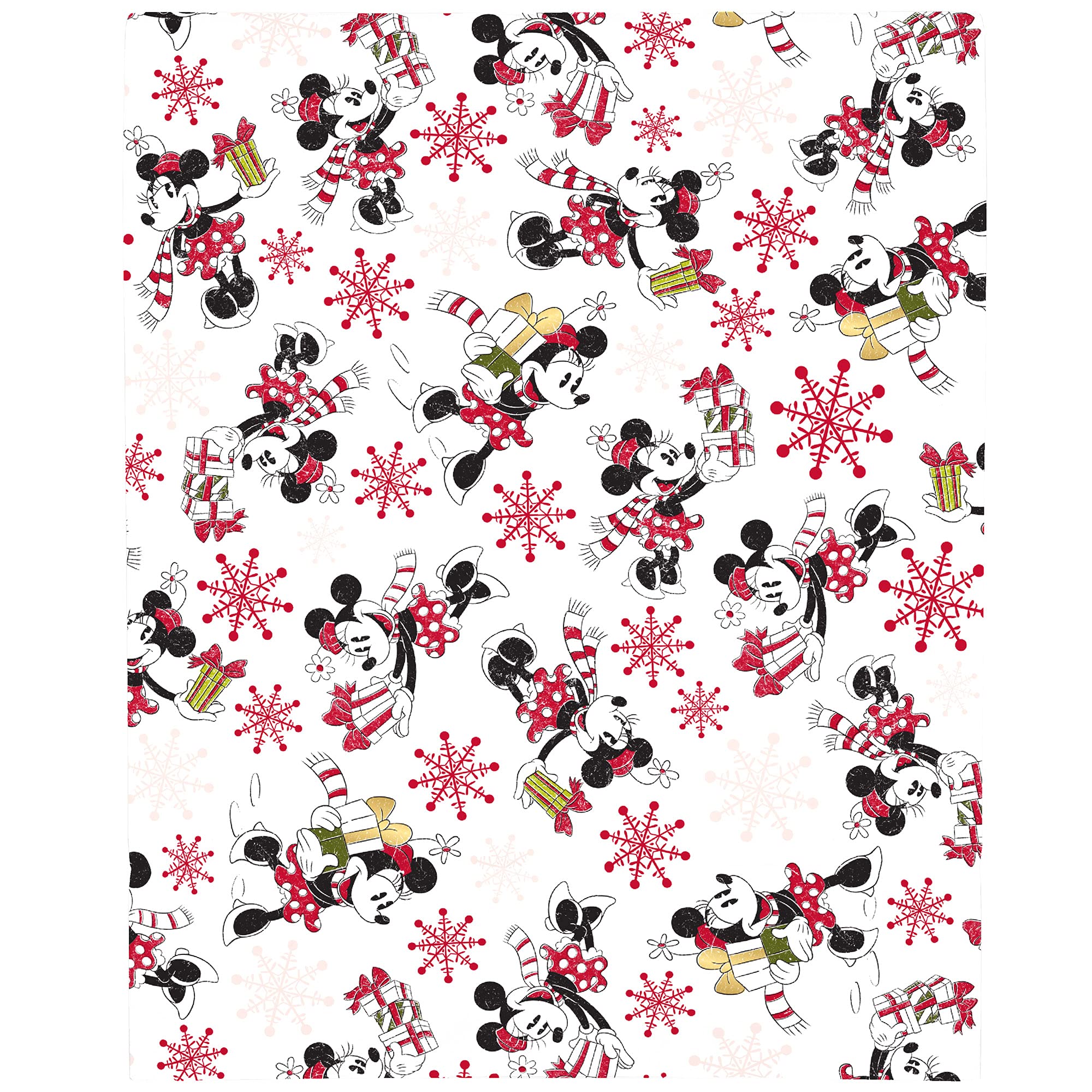 Ring in the holidays with Disney's festive Minnie Mouse Fitted Crib Sheet! Complement your holiday decor as Minnie Mouse is delivering Christmas presents with snowflakes falling. Featured in shades of raspberry red, black, pink, and white. Lovely fabrics are so soft on baby's skin. Has full elastic edges for a safe and snug fit. Measures 28" x 52" x 8" and fits a standard size crib/toddler mattress. Machine washable for easy care!