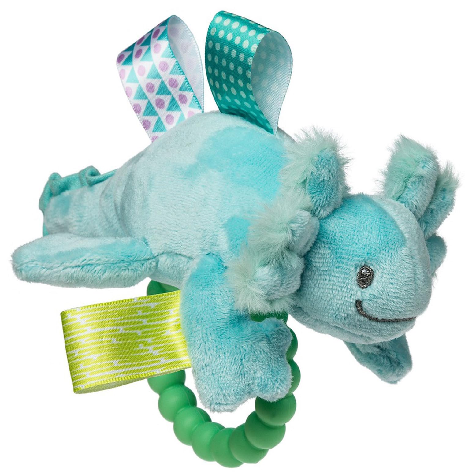 Part rattle, part teether, and such a sweet toy for your little one. Fizzy Axolotl rattle is fun to shake and features a sewn-in baby-safe silicone teether that is comforting to hold and chew. Even when not teething, babies benefit from exploring with their mouths and building muscles that support eating and speech development. On top of all that baby fun, this aqua blue axolotl is adorned with interactive and soothing satin loop tags that babies love to explore. With truly innovative attributes and small beginnings, Taggies has revolutionized and redefined how little ones feel secure and engaged in play. Taggies was born when a mom noticed her child's fascination with satin tags, and blossomed into a world of treasured products. Exploring Taggies textured tags can provide sensory stimulation that babies crave for development and have an amazing calming effect on little ones. Taggies Signature Collection is recognized as the premium line of wonderfully soft and soothing Taggies toys made by Mary Meyer.