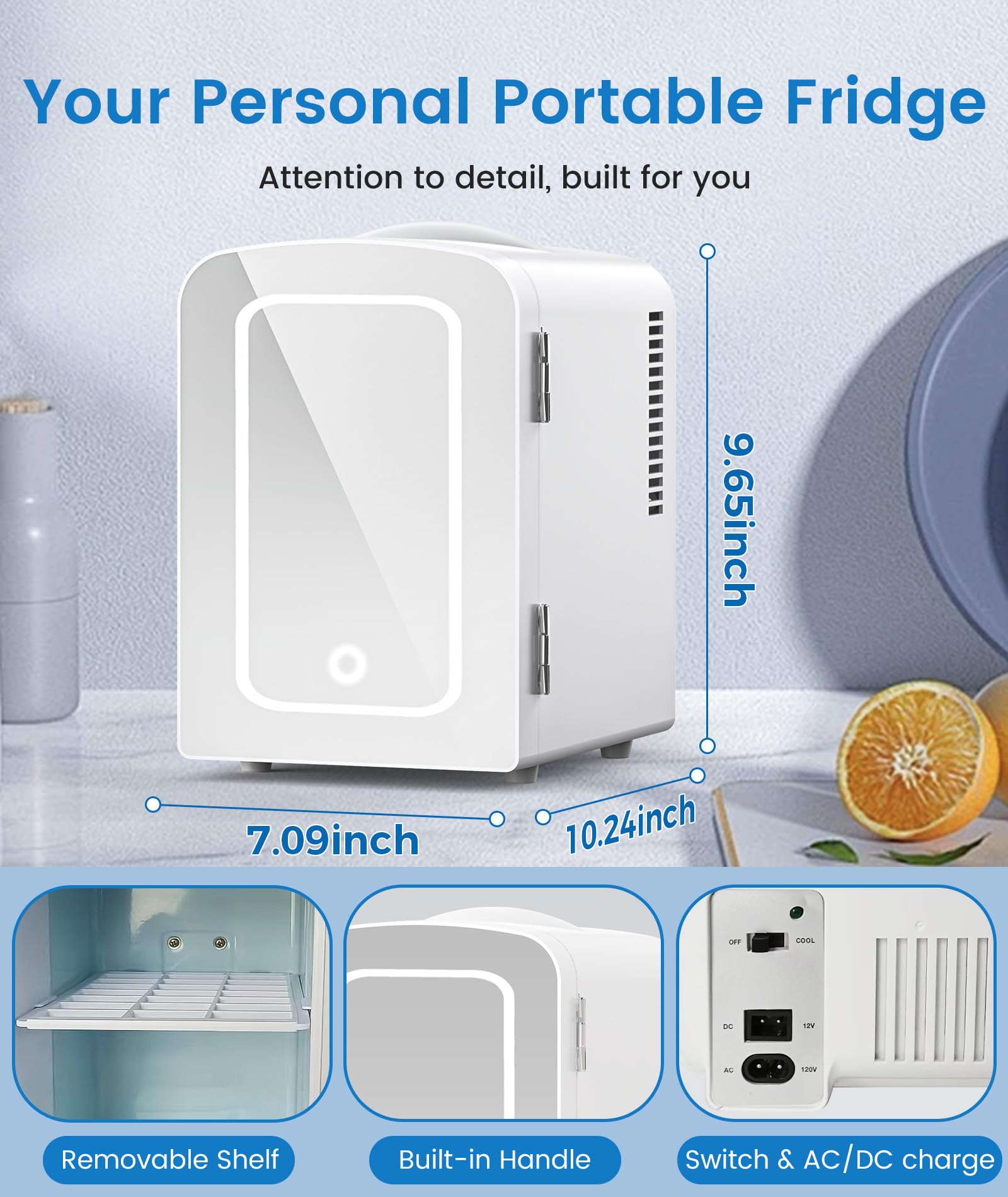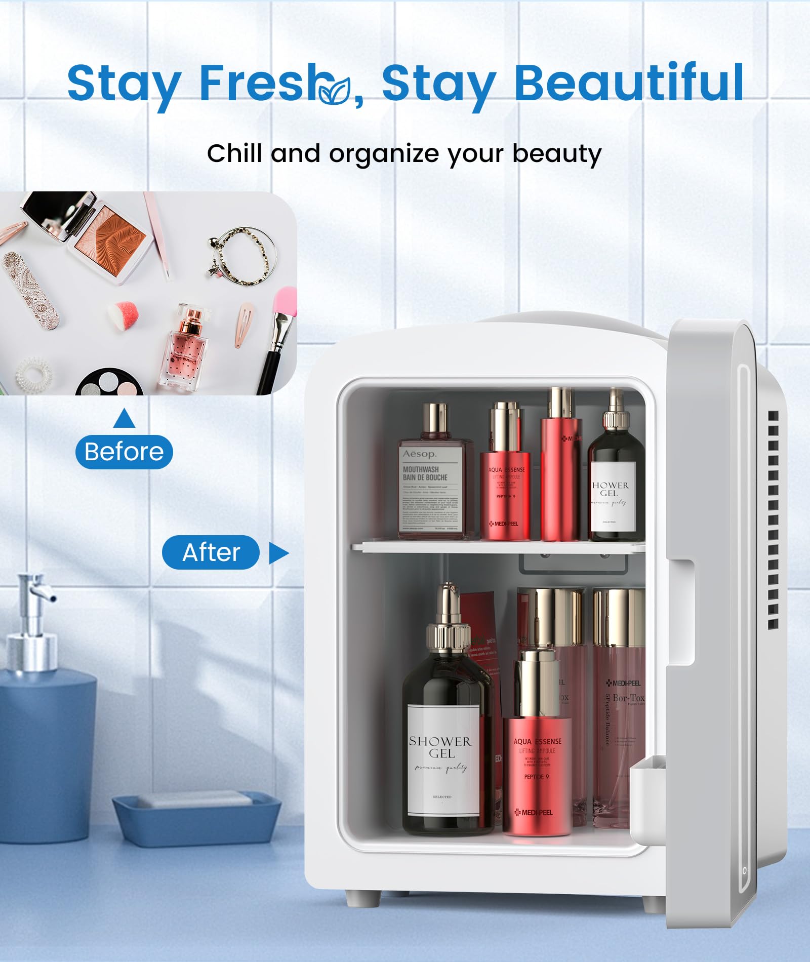 【Multifunction Mini Fridge】Electactic mini fridge features a built-in makeup mirror and a removable shelf, allowing flexible storage for various items. Perfect for skincare, cosmetics, food, beverages, breast milk, insulin, medications, and other essentials. Stay fresh and cool at all time!
