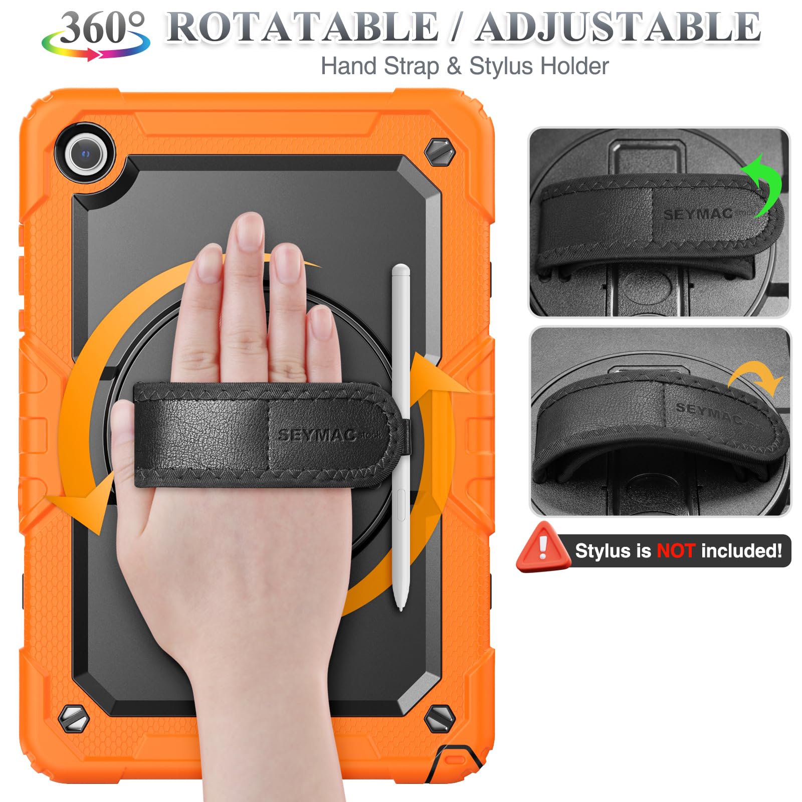 【Rotating Hand Strap / Stand】 Provide the securest protection and more convenience when you play or work with Galaxy Tab A11 Plus/A9 Plus. Its 360° Rotating Kickstand, can provides 30°-45°-60° viewing/drawing/video/typing angles. With soft handle strap, easier to use your tablet at home or outdoor working, studying, gaming for kids &adults