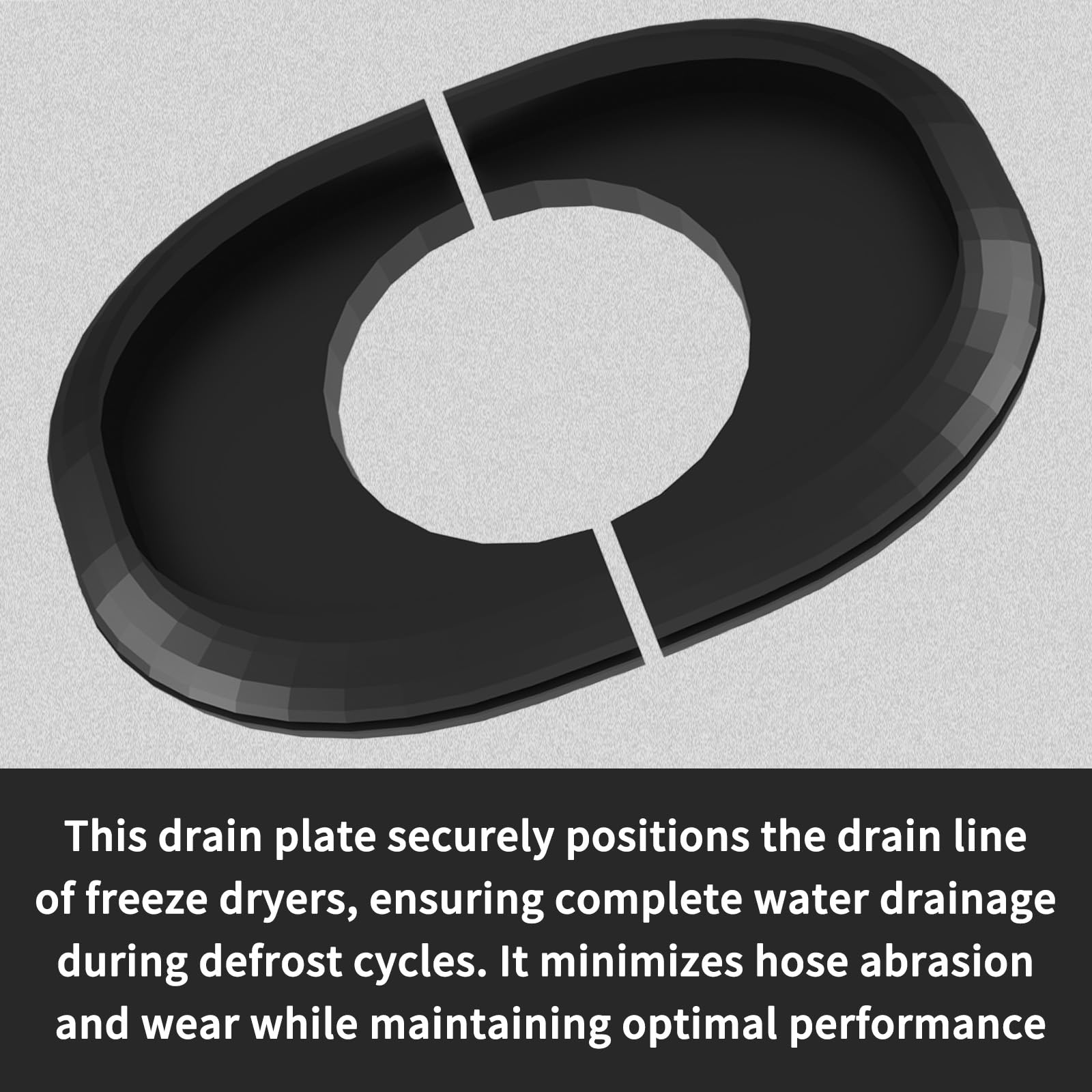 Enhanced Stability: Our drain plate for Harvest Right freeze dryers holds the drain line during defrosting, keeping it properly positioned for complete water drainage and reducing chafing and hose wear