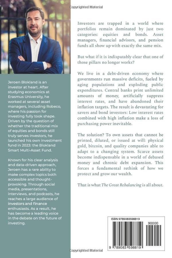 Investors are trapped in a world where investment portfolios remain dominated by just two categories: equities and bonds. Asset managers, financial advisors, and pension funds all show up with exactly the same mix. But what if it is indisputably clear that one of those pillars no longer works? We live in a debt-driven economy where governments run massive deficits, fueled by aging populations and exploding public expenditures. Central banks print unlimited amounts of money, artificially suppress interest rates, and have abandoned their inflation targets. The result is devastating for savers and bond investors: Low interest rates combined with high inflation make a loss of purchasing power inevitable. The solution? To own assets that cannot be printed, diluted, or issued at will: physical gold, bitcoin, and quality companies able to adapt to a changing financial system. Scarce assets become indispensable in a world of debased money and chronic debt expansion. This forces a fundamental rethink of how we protect and grow our wealth. That is what The Great Rebalancing is all about.