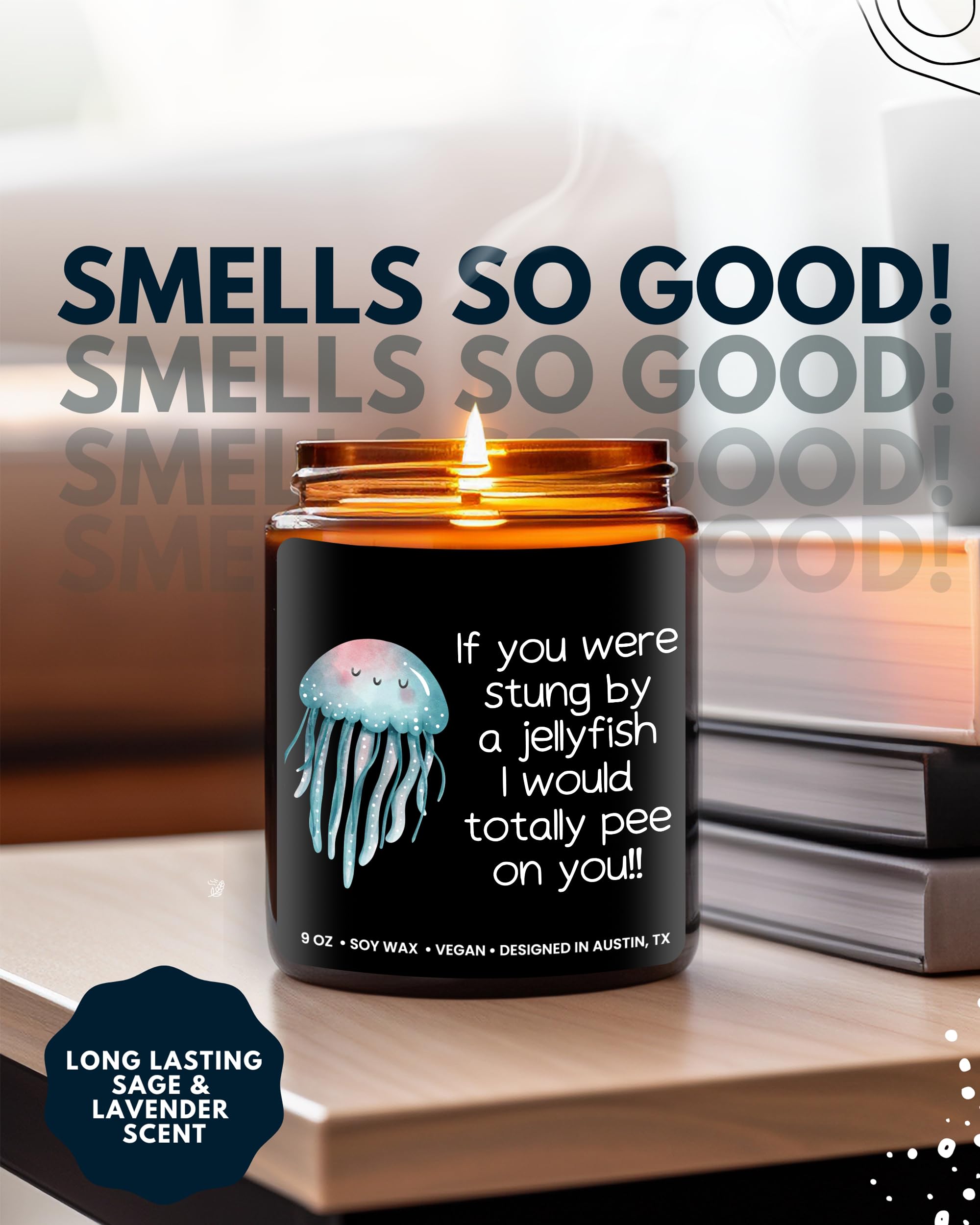 💠Designed with Love in Austin, TX: These wood candle wicks are specifically crafted to be the best gift for friend woman & gifts for best friends for any special occasions! Not only does it have a fun label design, "If you were stung by a jellyfish I would totally pee on you", this candle is also designed to last up to 50 hours. The best friend gifts for women, cute gifts for friends female, & gifts for best friend woman!