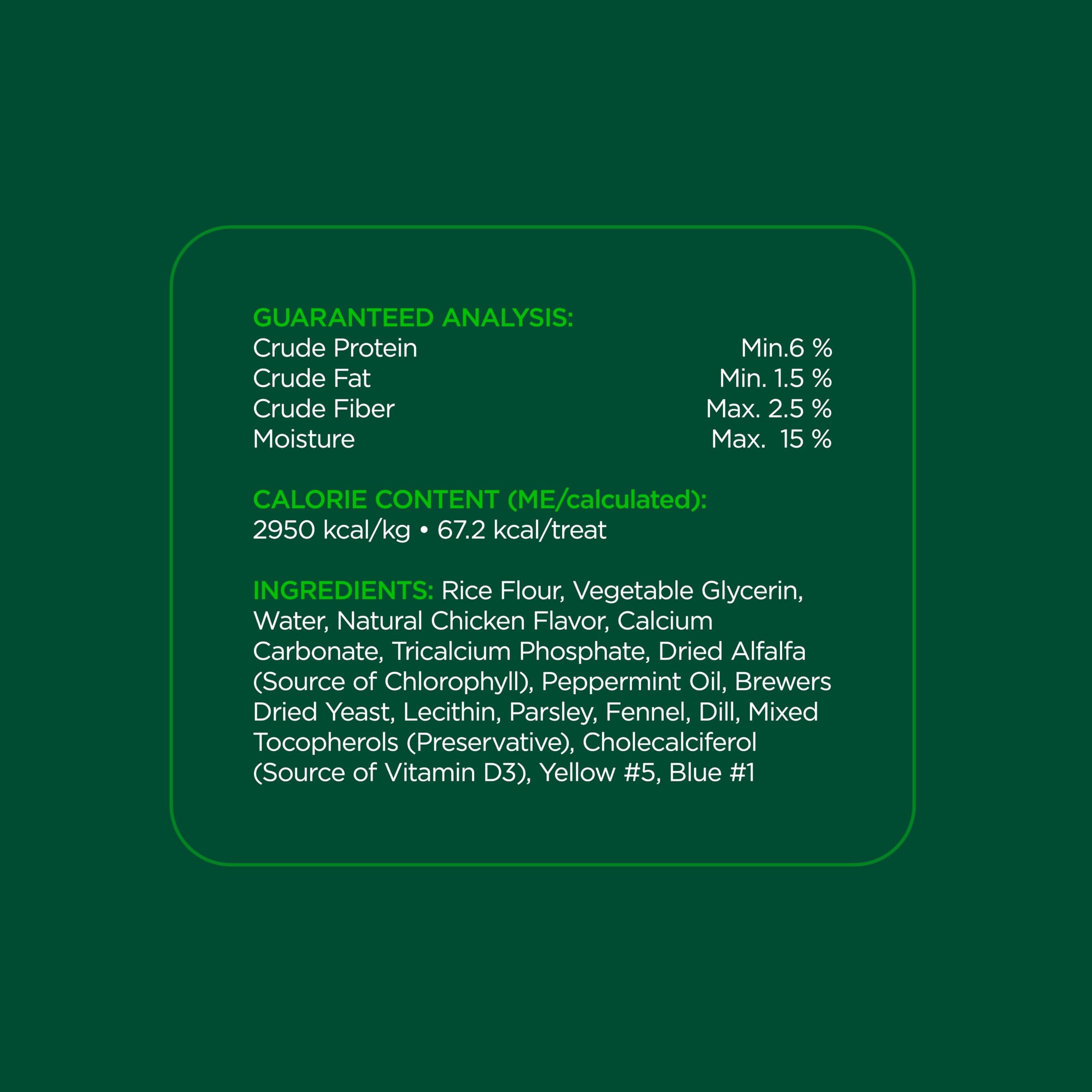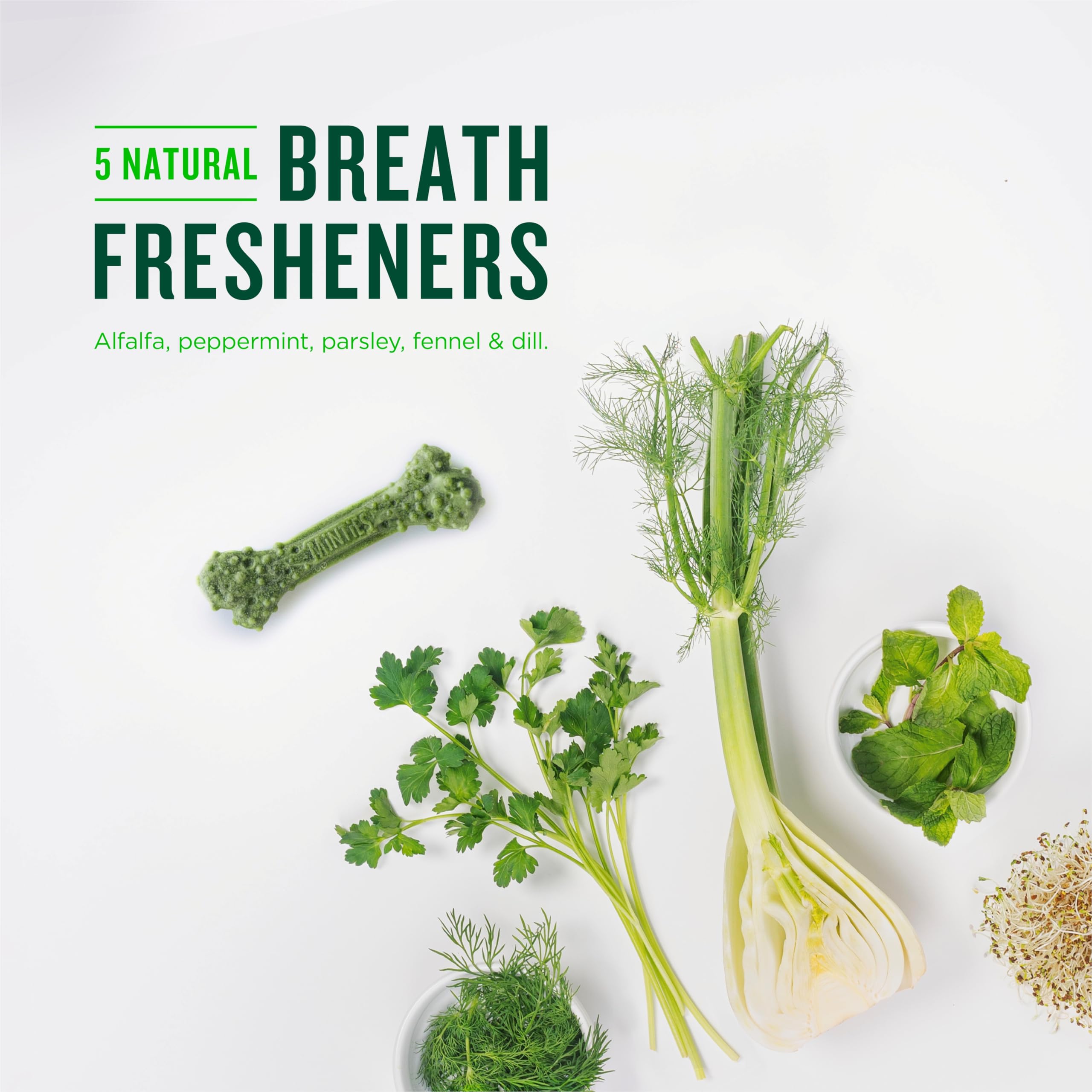 Dog Chews for Cleaning Teeth and Promoting Good Dog Oral Health: Using Minties dog dental chews daily helps promote oral health and freshens your dog's breath with five (5) breath fresheners alfalfa, parsley, fennel dill, and peppermint