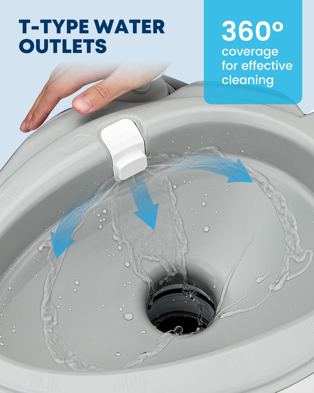 EFFICIENT FLUSHING: The T-type flush nozzle and high-pressure bellows pump ensure each flush is both effortless and thorough. With a 2.64-gallon water tank offering up to 90 flushes and a large 5.3-gallon waste tank, Kohree portable toilet for adults provides the perfect balance of convenience and reliability for your outdoor stays. And the porta potty is also equipped with a water gun to clean up any part of the inner wall of the toilet.