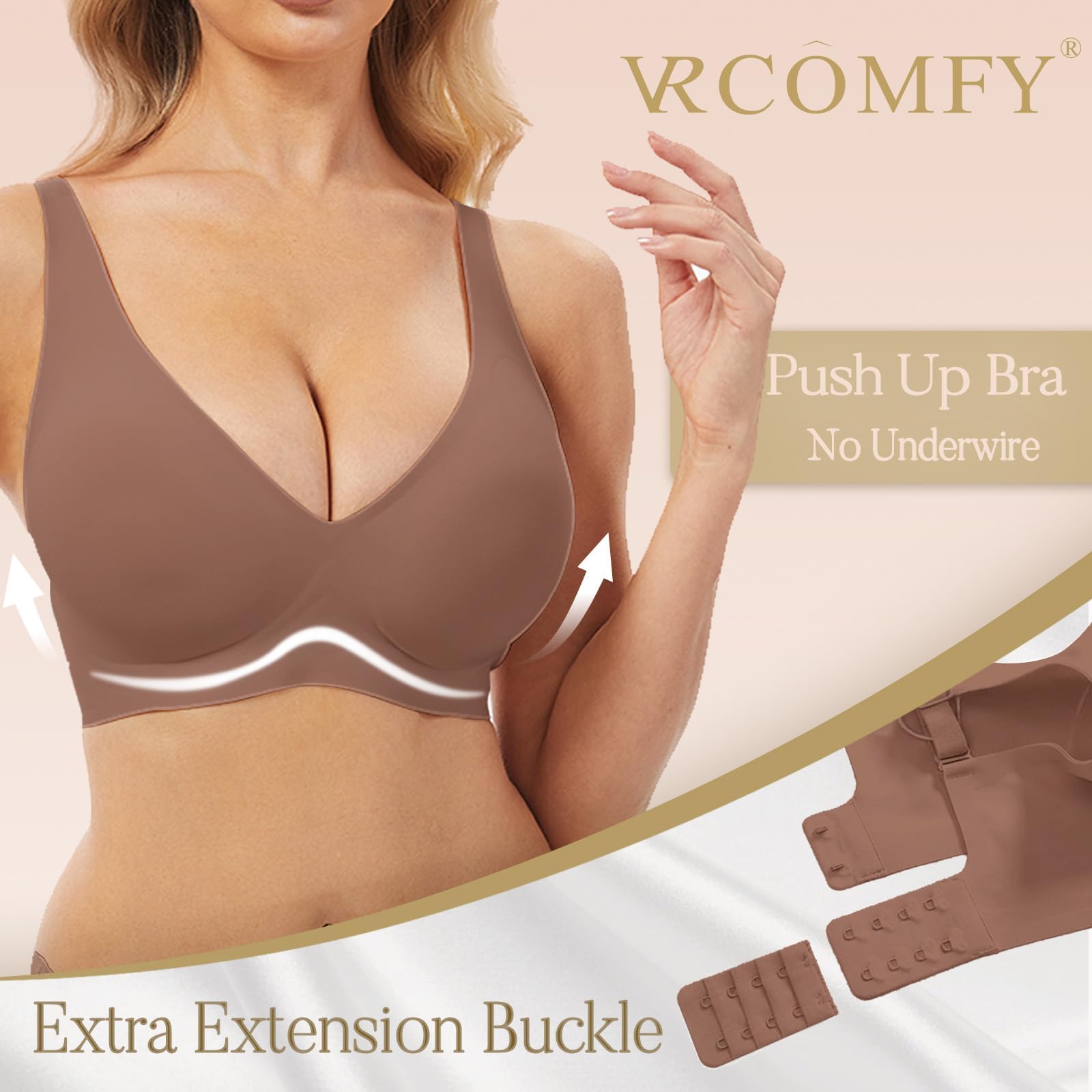 【Smooth 3D Lift & Shaping】Designed with discreet adhesive strips and side cushions, this wireless push up bra combines its deep-V cut to lift and shape your bust. Achieve a naturally fuller look and enhanced cleavage with a silhouette that highlights your curves