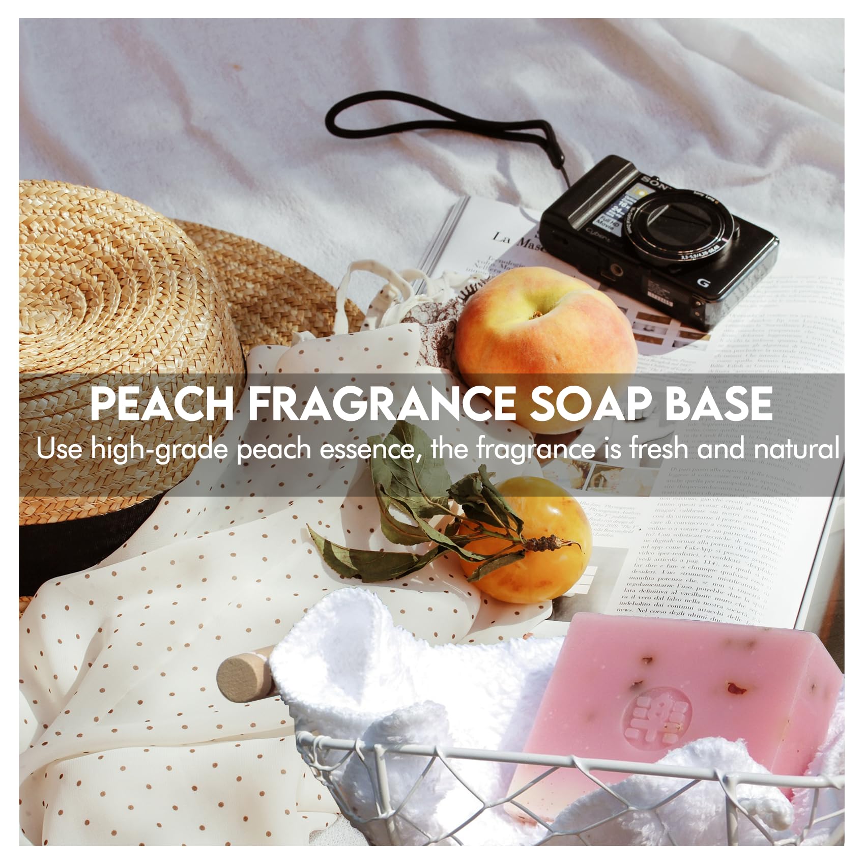 Premium Ingredients: Elevate your skin care routine with the finest ingredients nature has to offer. Our soap base is carefully crafted from purified water, glycerin, coconut oil and olive oil, with goat milk, honey, peach, aloe vera, oat milk, and shea butter extracts. This thoughtful blend not only delivers a delightful scent that captivates the senses, but also creates a rich, hydrating lather that leaves your skin feeling nourished and refreshed.