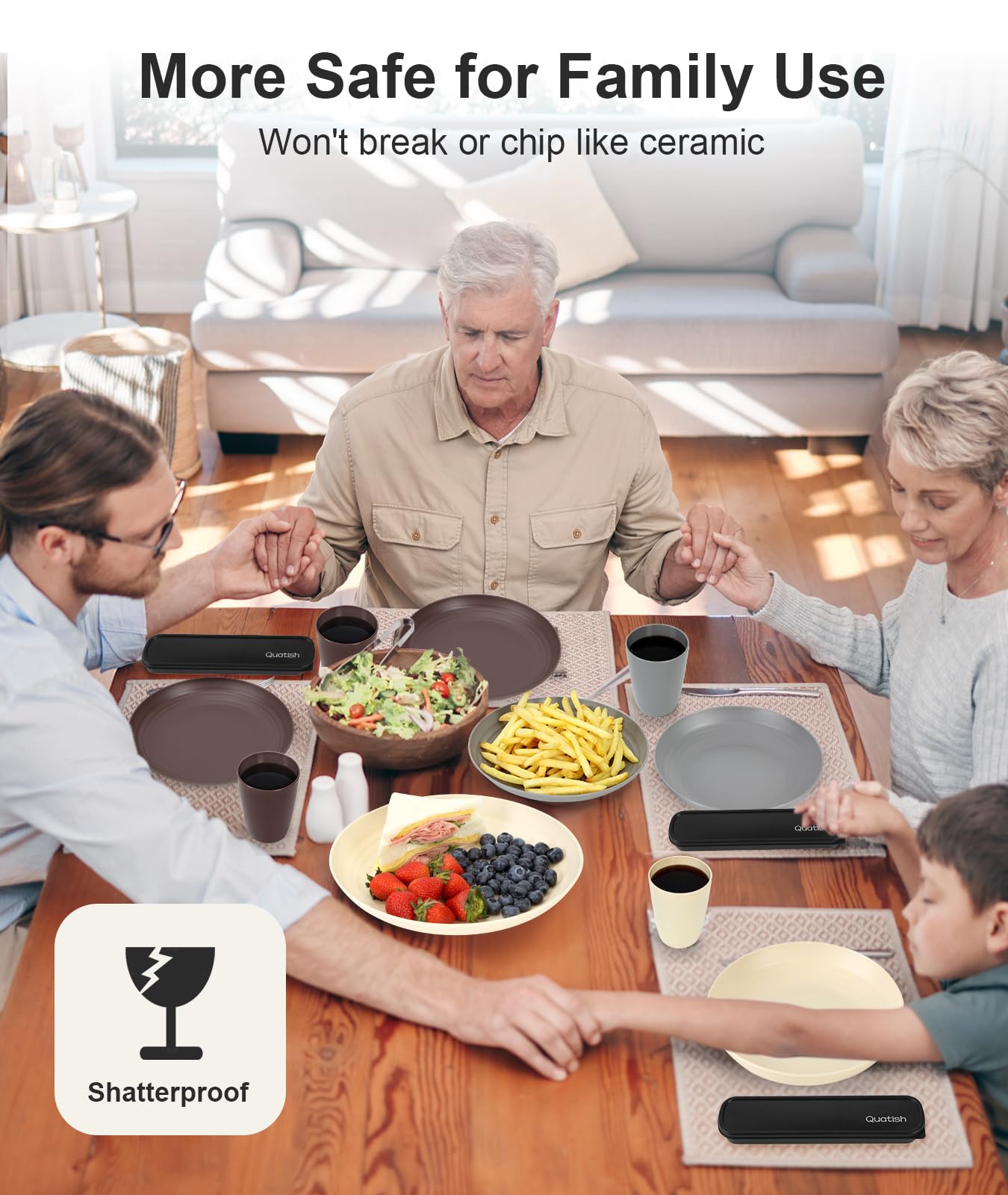 Durable and Kid-Friendly: Nearly unbreakable, shatterproof plastic dinnerware set with raised edges, resistant to chipping, scratches, and wear-related damage. Ideal for camping, RVs, beach houses, and safe for toddlers and children